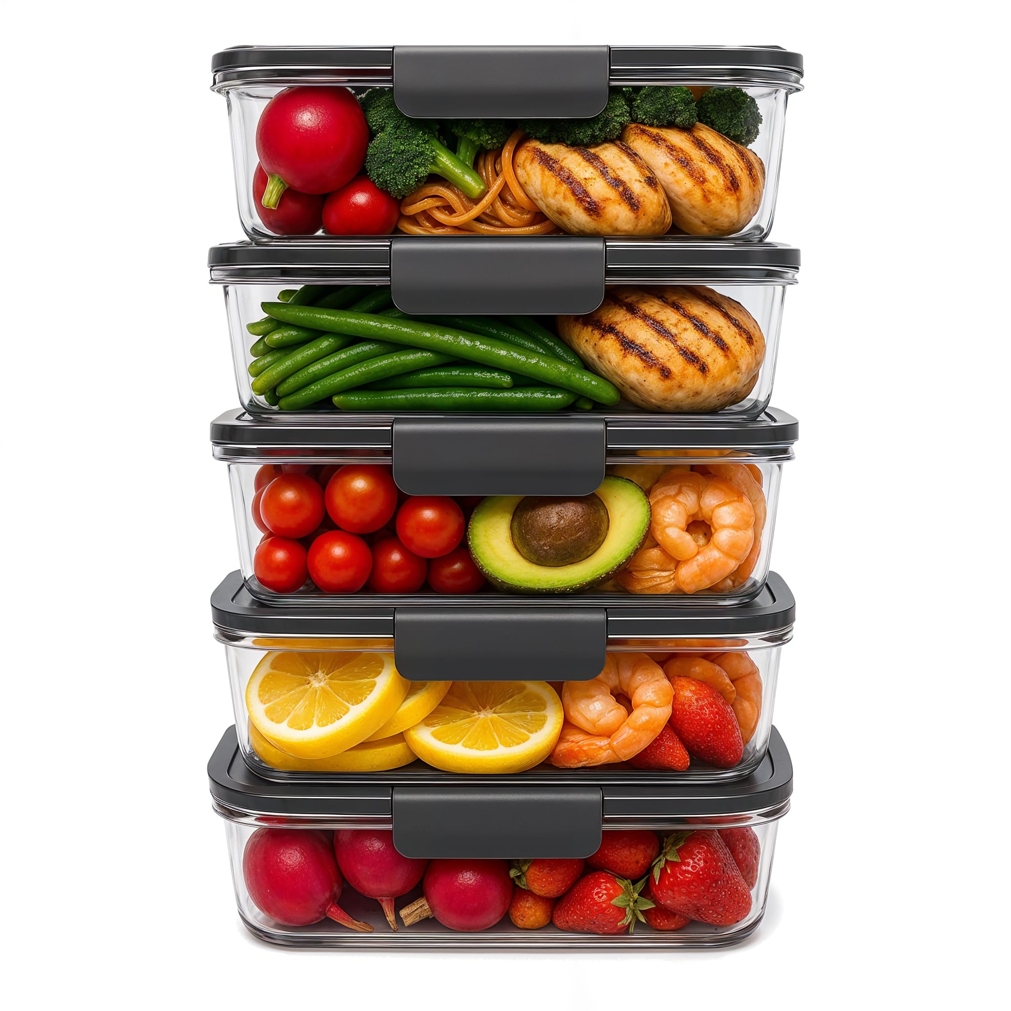 LuminaLuxe Contenedores de almacenamiento de alimentos, paquete de 5, sin BPA, con tapas a prueba de fugas, para cena, almuerzo y