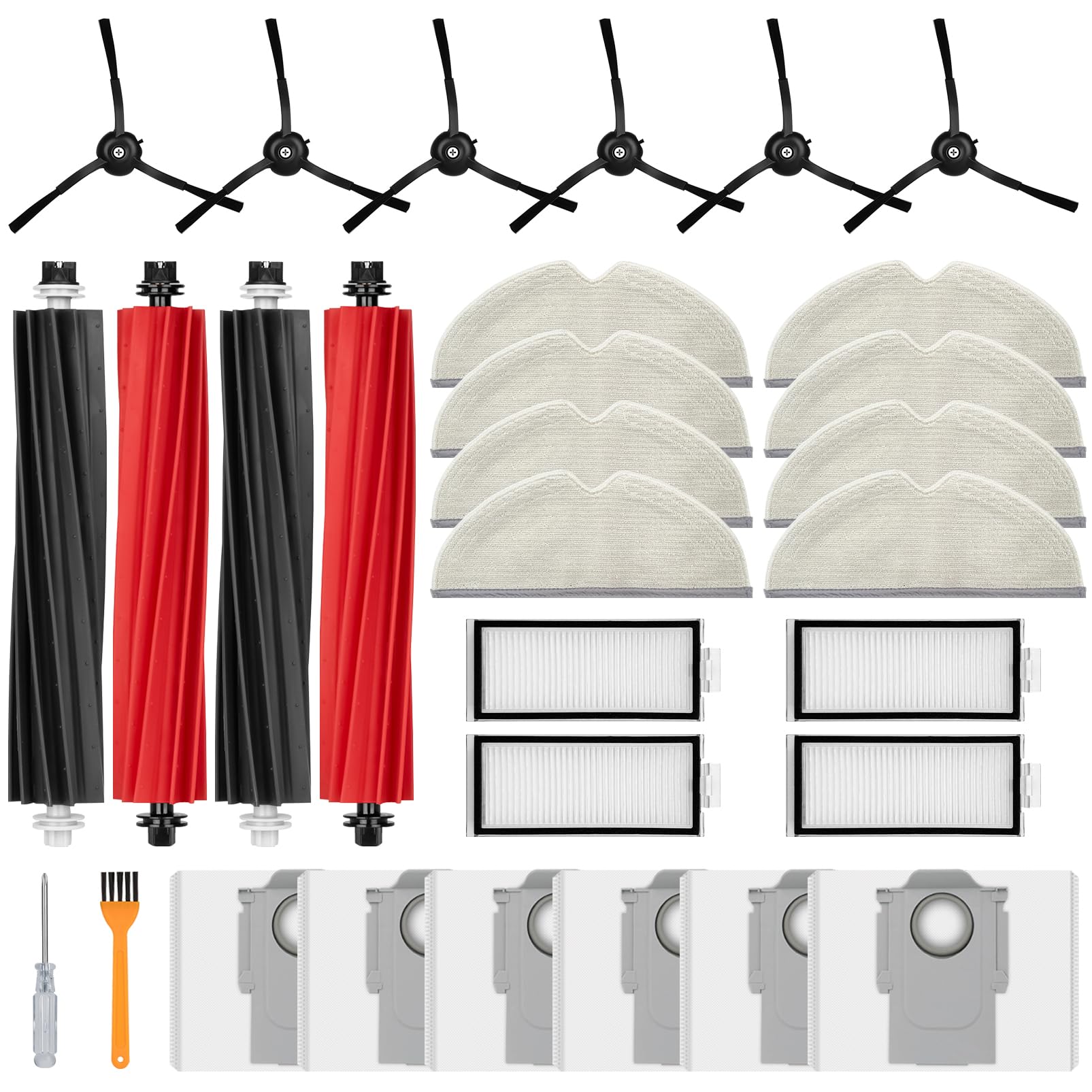 Paquete de 28 accesorios compatibles con Roborock Q5 Pro/Q5 Pro+, Q8 Max/Q8 Max+, las piezas incluyen: 2 cepillos de doble rodillo