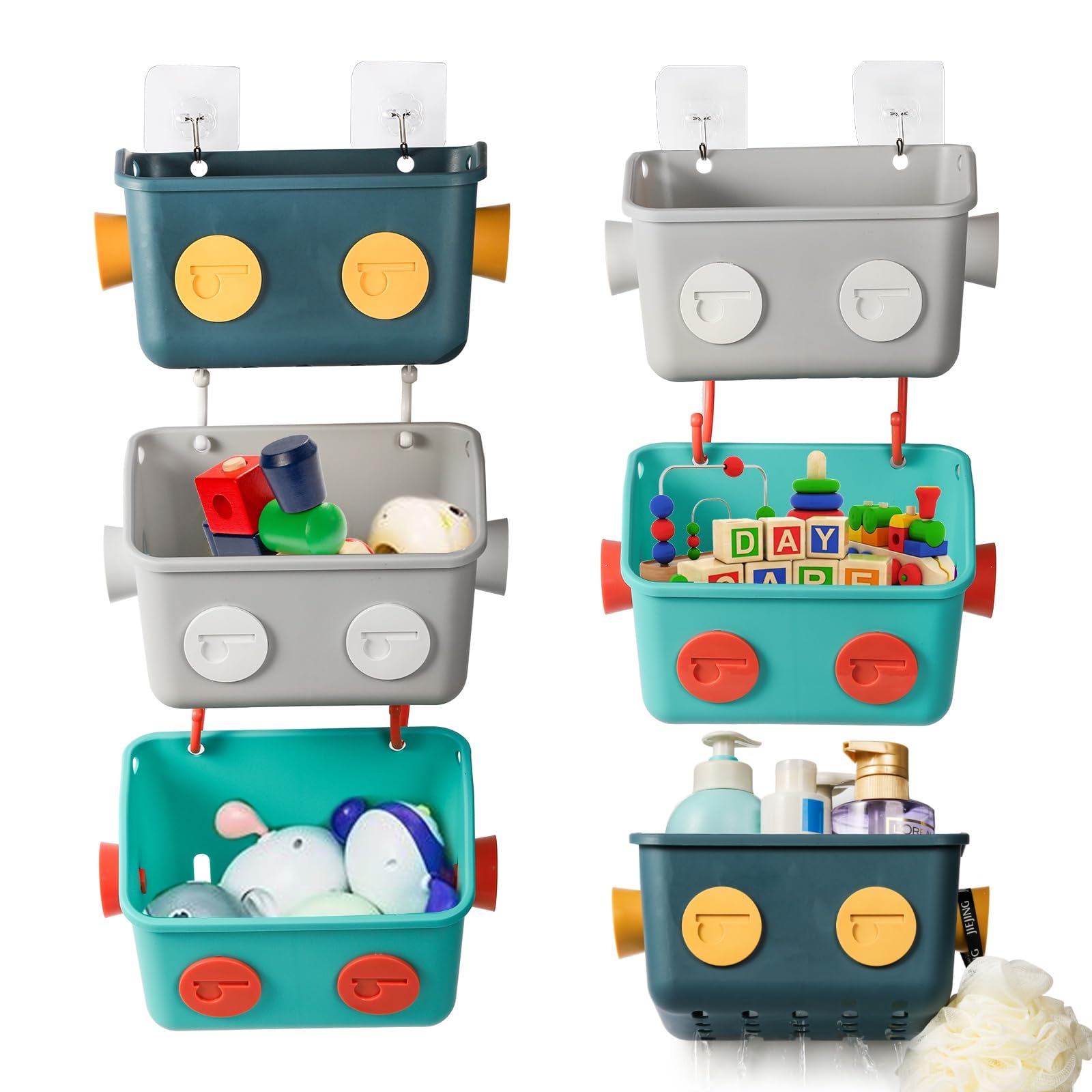 Paquete de 6 cestas organizadoras de almacenamiento de juguetes de baño, 3 capas montadas en la pared, organizador de ducha colgan