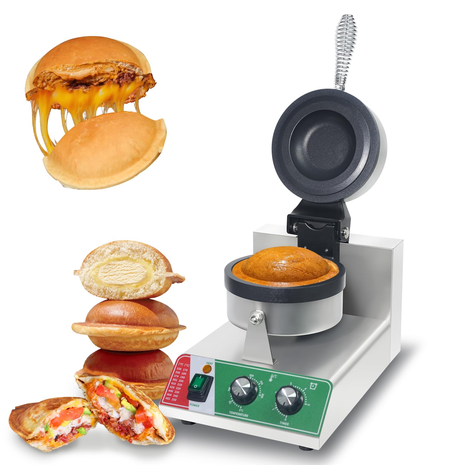 Máquina comercial de gofres de hamburguesa OVNI, máquina de llenado de helado con 0-5 tiempo y control de temperatura de 122-572 °