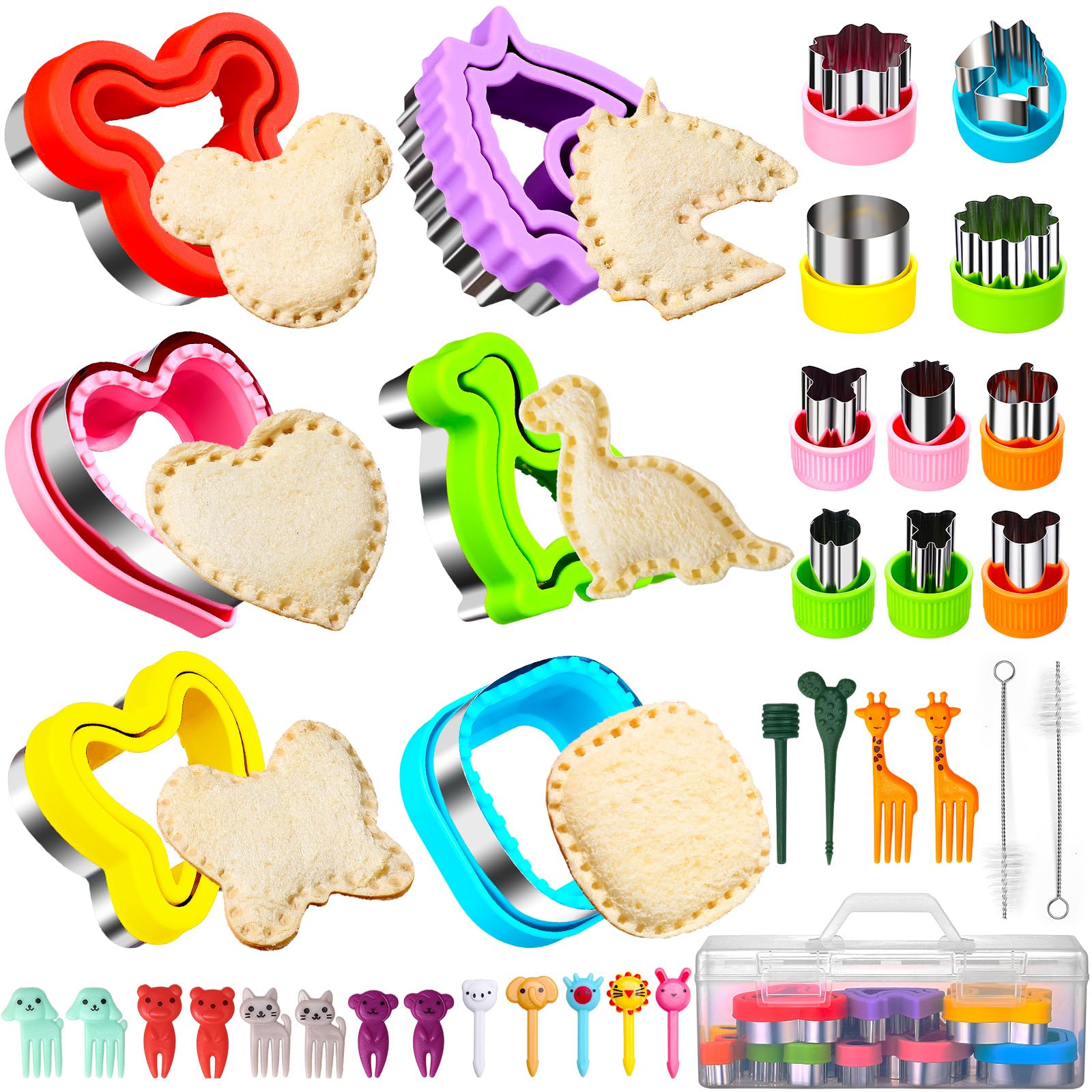 36 piezas de cortador de sándwiches y sellador con estuche de almacenamiento, sandwichera y cortador de frutas, palillos de alimen