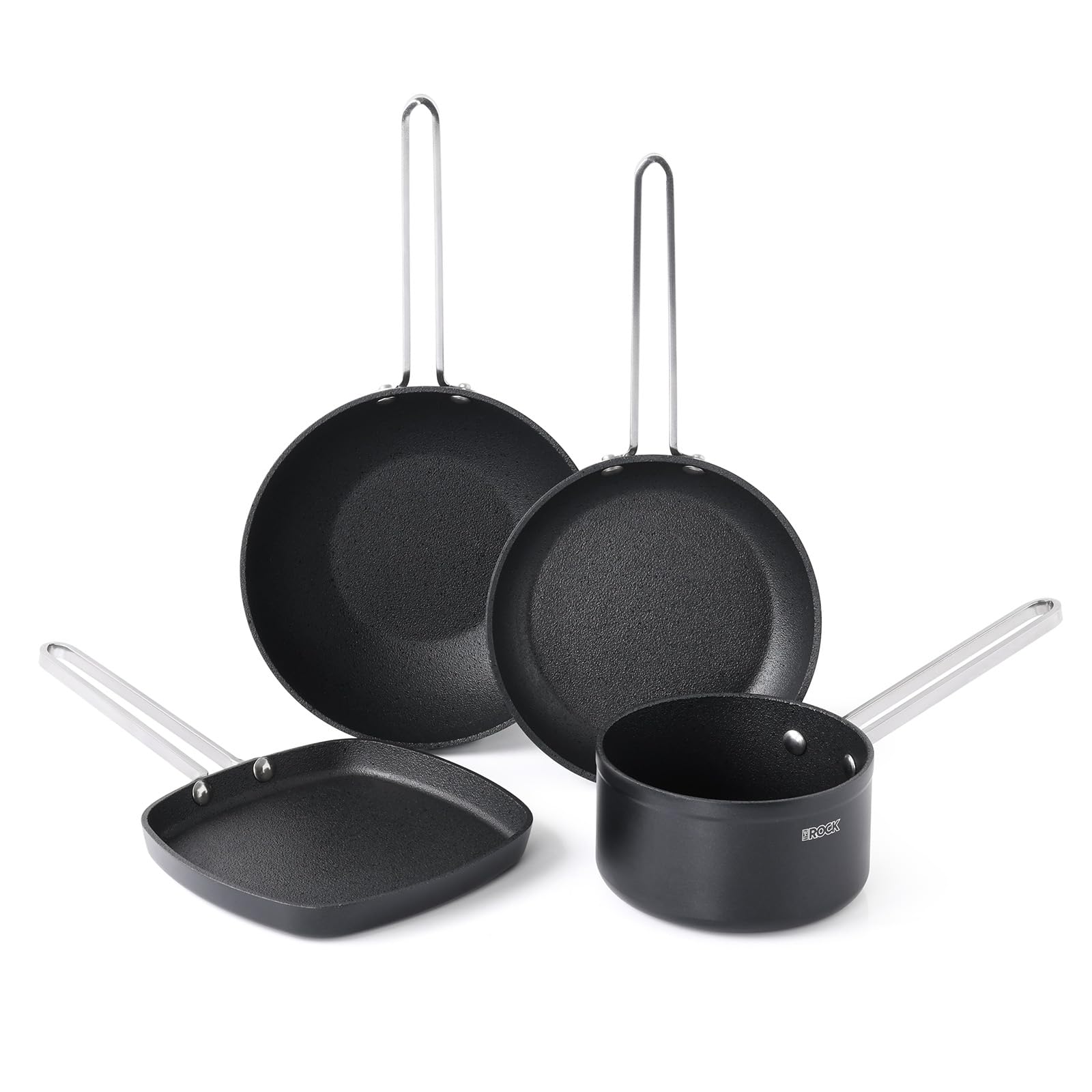 THE ROCK Juego de ollas y sartenes antiadherentes de una sola porción, juego de 4 utensilios de cocina con control de porciones co