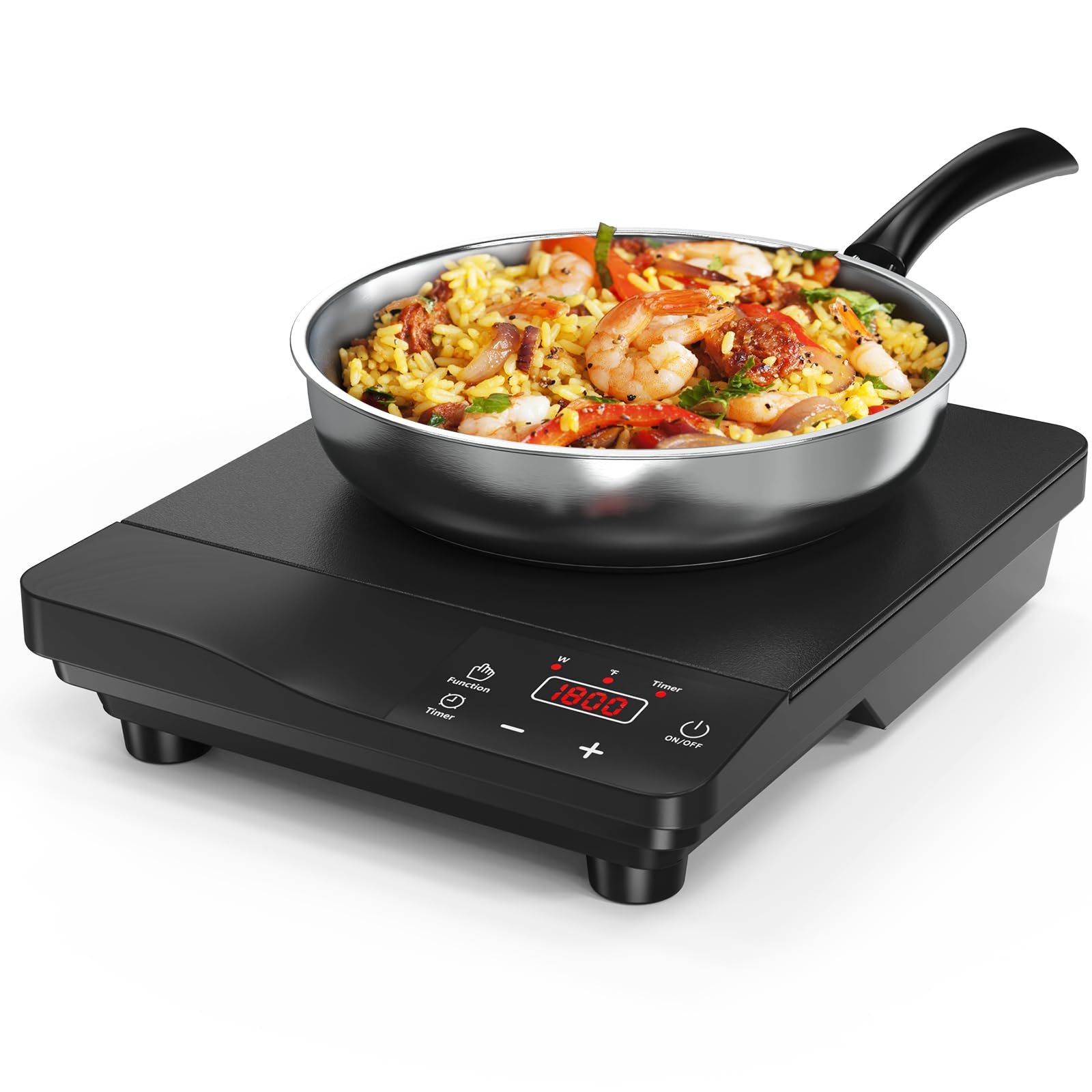 Placa de inducción, quemador de inducción portátil de 1800 W y sartén de 10 pulgadas, placa caliente de 110 V-120 V para el hogar,