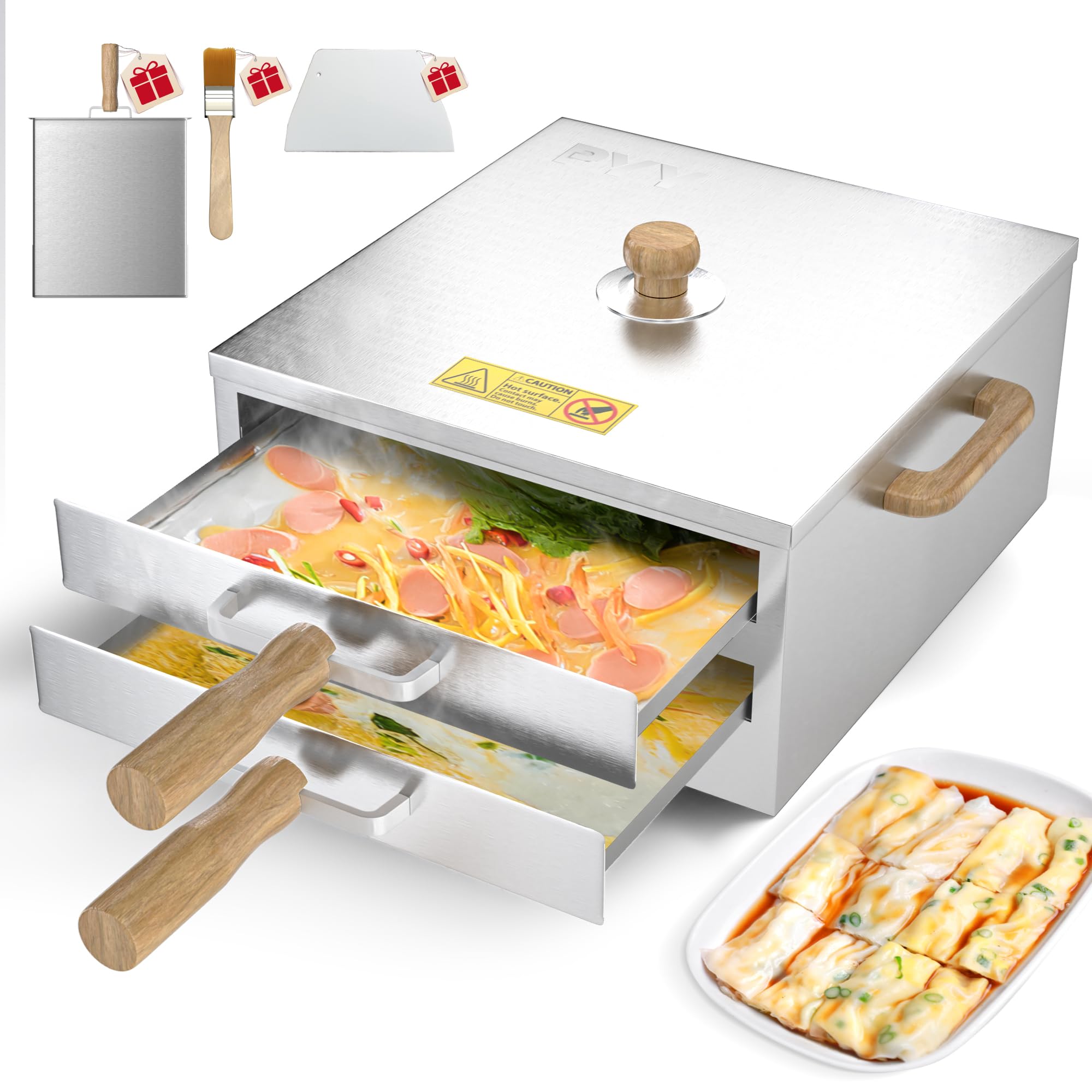 PYY Máquina vaporera de rollo de fideos de arroz, 2 capas, 3 bandejas, chinas cantonesas chinas para cocina comercial y doméstica