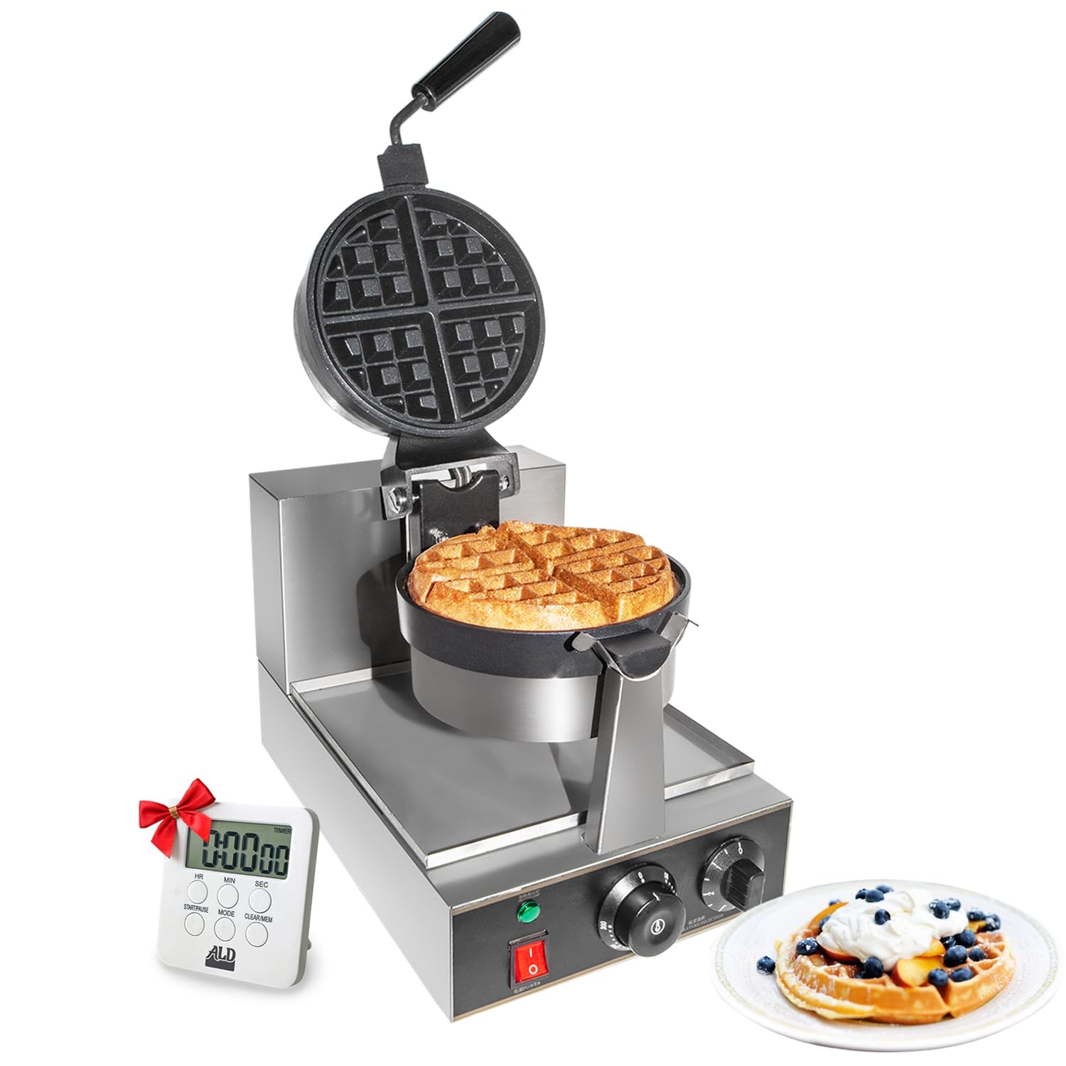 GorillaRock Gofrera belga gruesa | Plancha comercial para gofres | Acero inoxidable | Mecanismo giratorio (versión económica) | 11