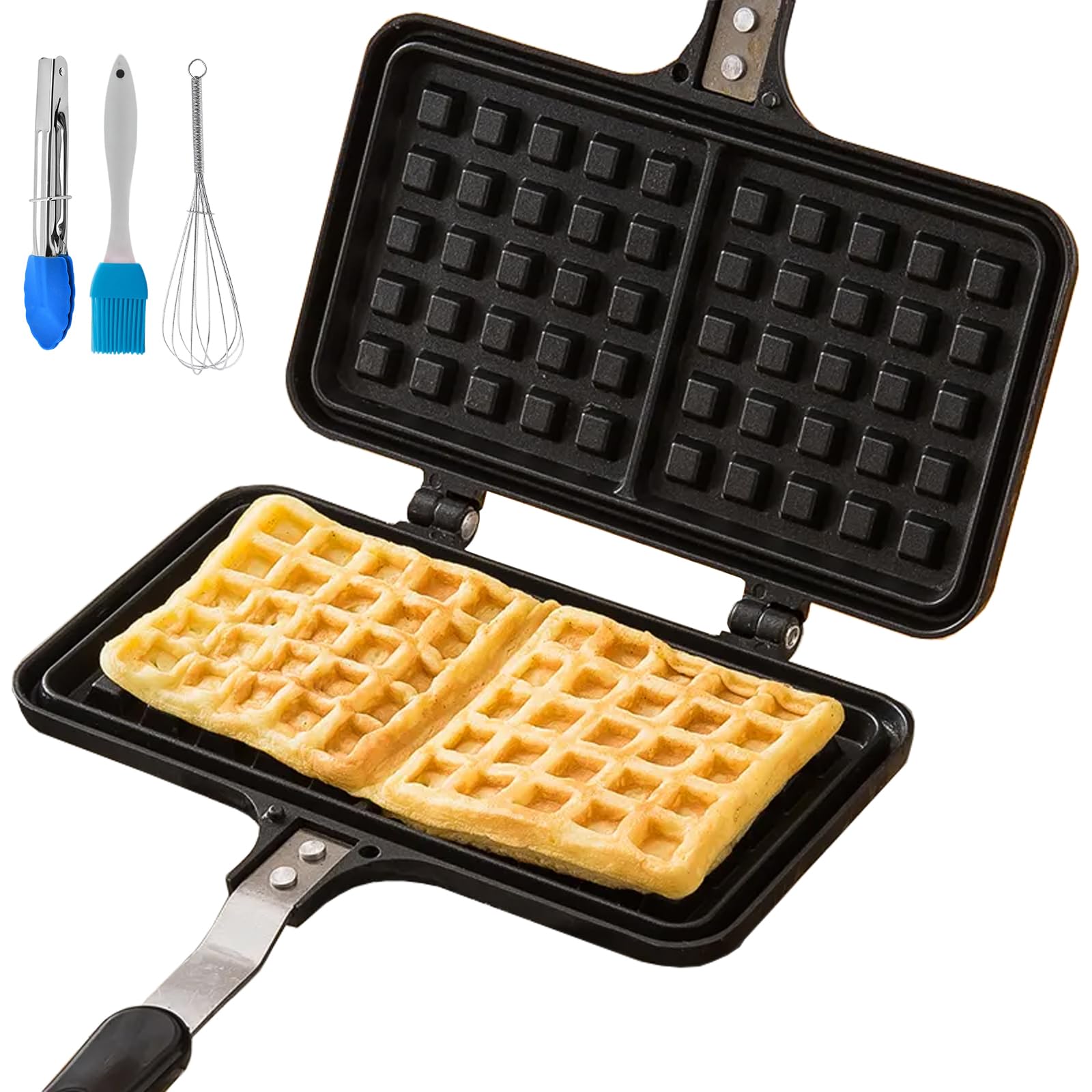 Estufa de aluminio antiadherente doble mini sartén para hornear gofres, 4.3 x 8.3 pulgadas, sartén para gofres belga, sartén para