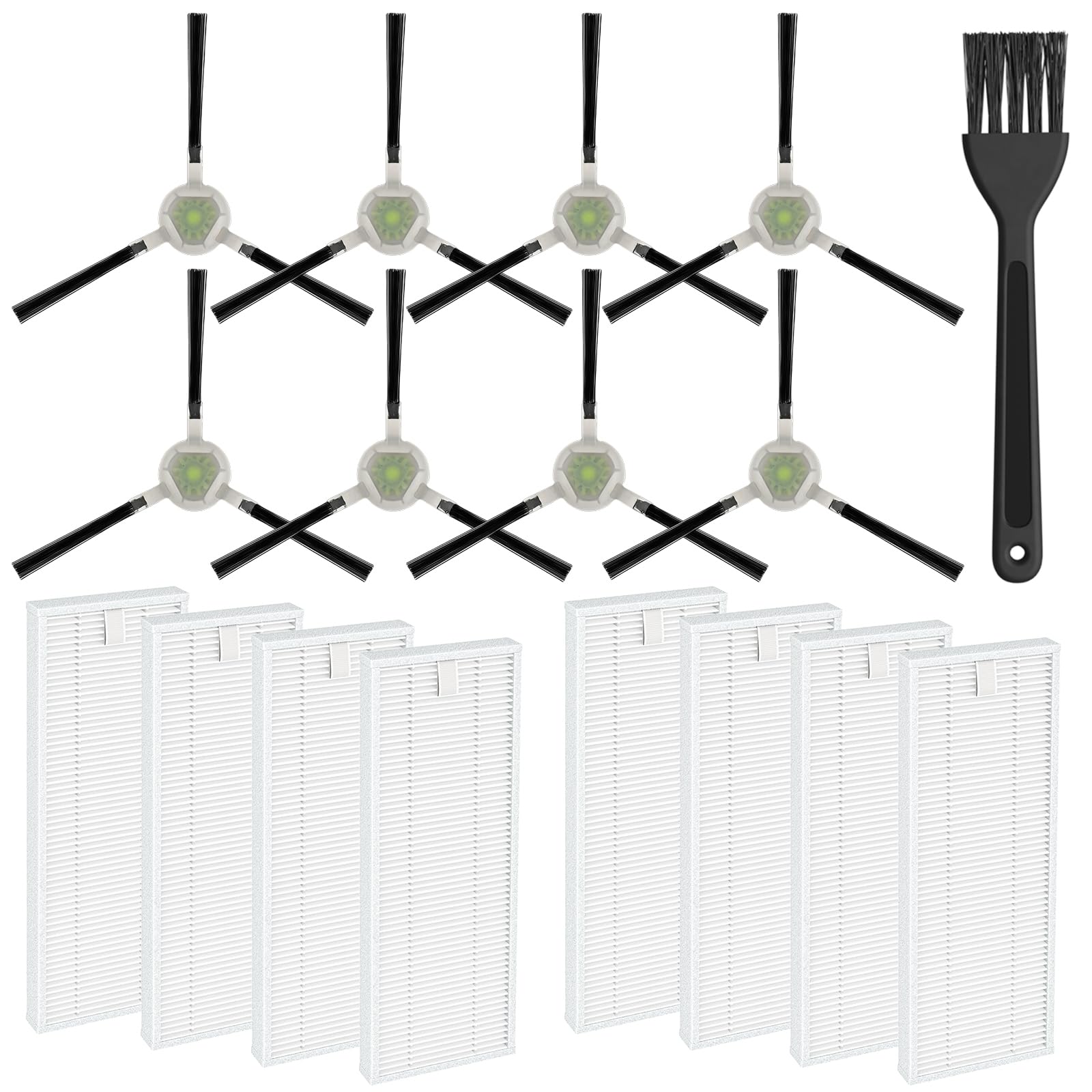 Piezas de repuesto: 8 filtros + 10 cepillos laterales para robot aspiradores (MAMNV, ZCWA, MANVINS, ONSON, GTTVO BR150/BR151)