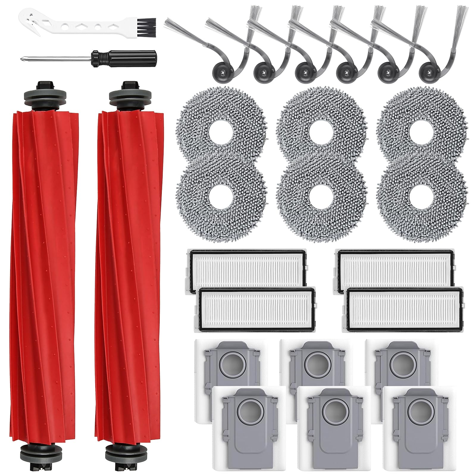 Paquete de 26 accesorios de repuesto para robot aspirador Roborock QV 35A/QV 35S, 2 cepillos principales, 6 cepillos laterales, 4