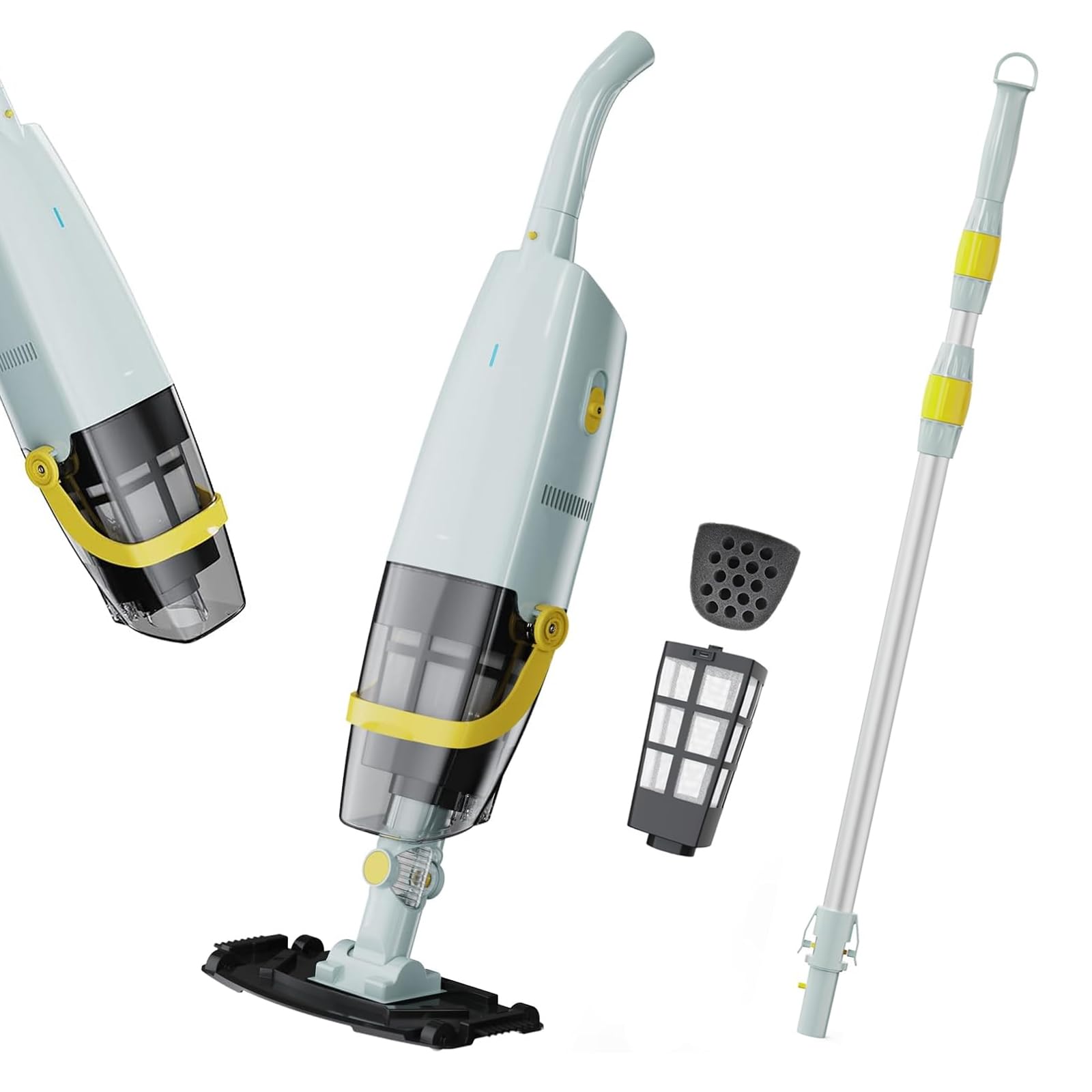 Aspiradora de piscina de mano inalámbrica (2025), limpiador de piscina recargable con poste telescópico y esponja fina, potente su