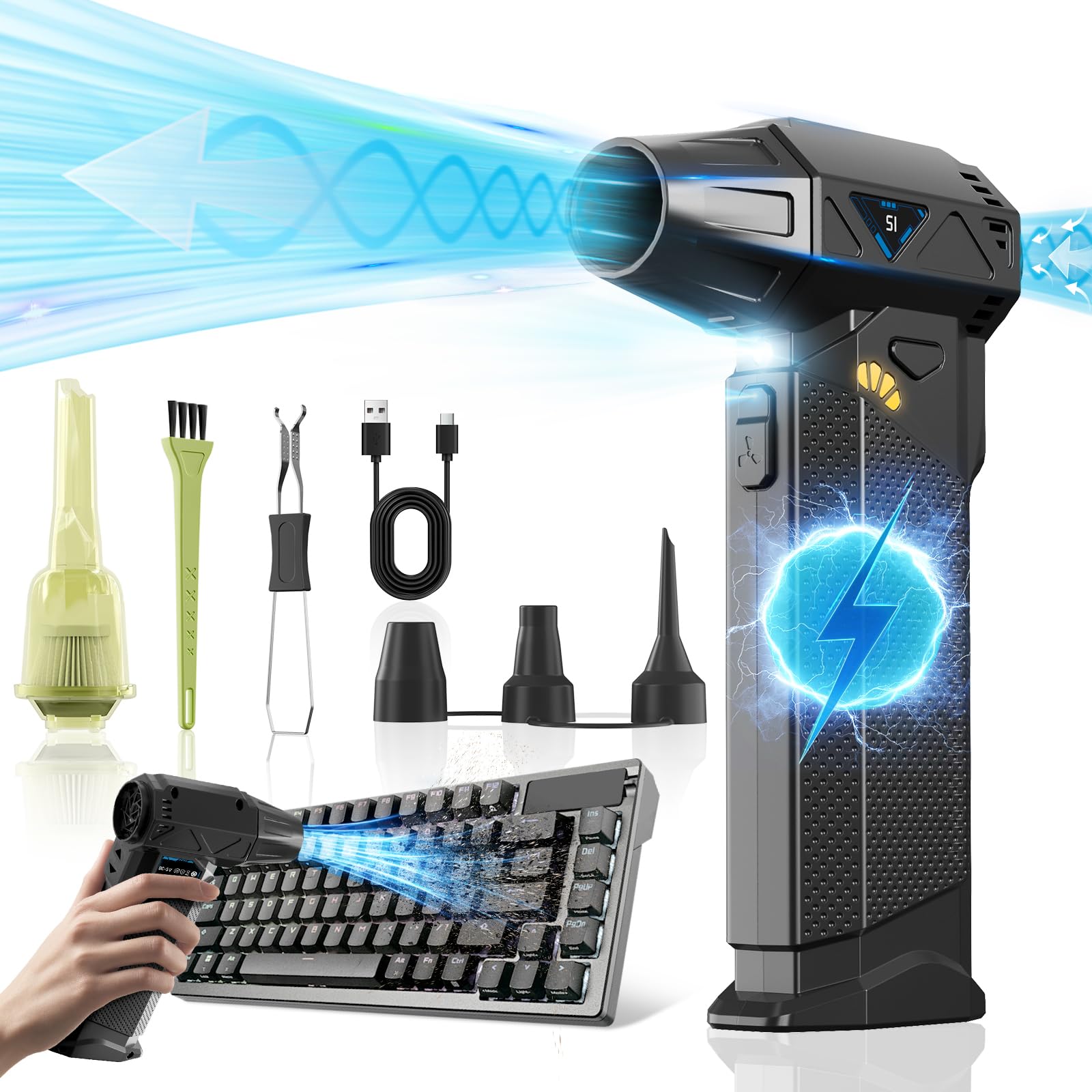 Zezzo Plumero de aire comprimido, mini plumero de aire eléctrico de 130000 RPM, potente ventilador de conducto de alta velocidad,