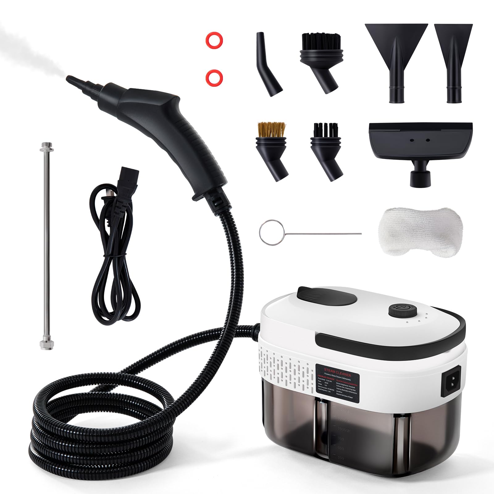 Lamberia Limpiador de vapor presurizado de mano de 2500 W con 12 accesorios, tanque de 1.5 cuartos de galón de 47.3 fl oz, vaporiz