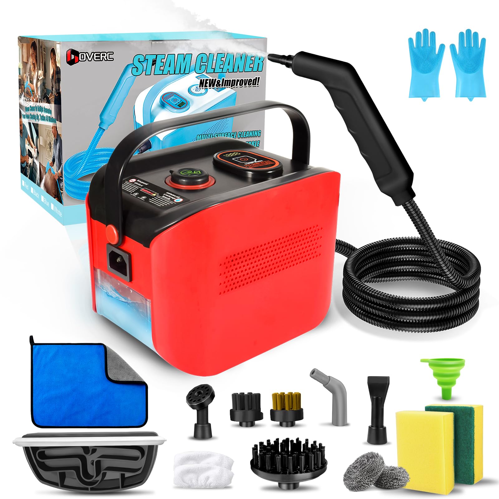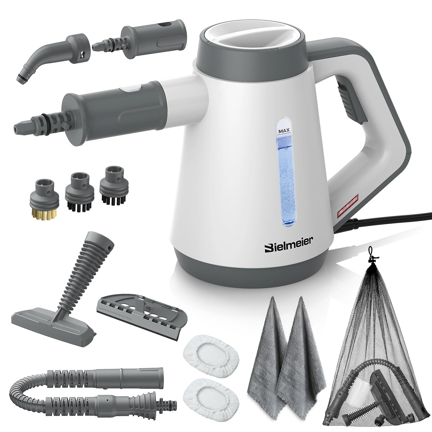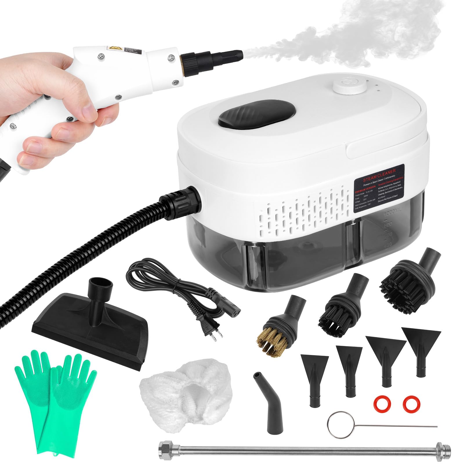 Limpiador a vapor, mango ajustable de 3 niveles, tanque de 1.69 cuartos de galón, vaporizador portátil para limpieza con 9 accesor