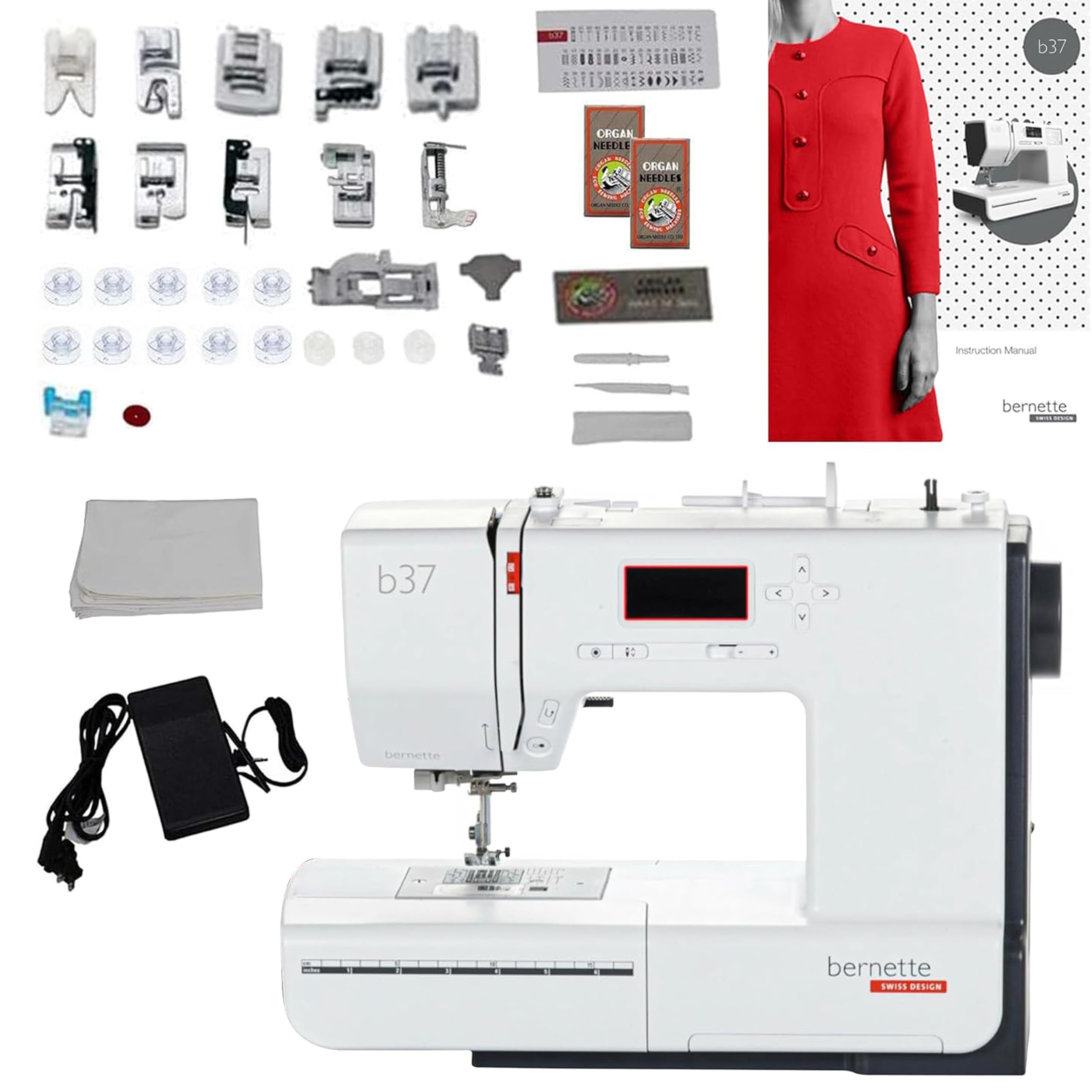 Bernette B37 Máquina de coser computarizada de diseño suizo – Mesa de extensión LCD LED 5 pies prensatelas bobinas enhebrador de a
