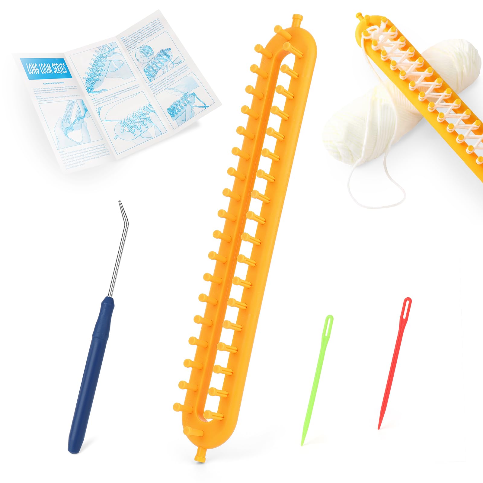 Frola Juego de telar de tejer largo y redondo con aguja de gancho, fabricante de pompones de regalo