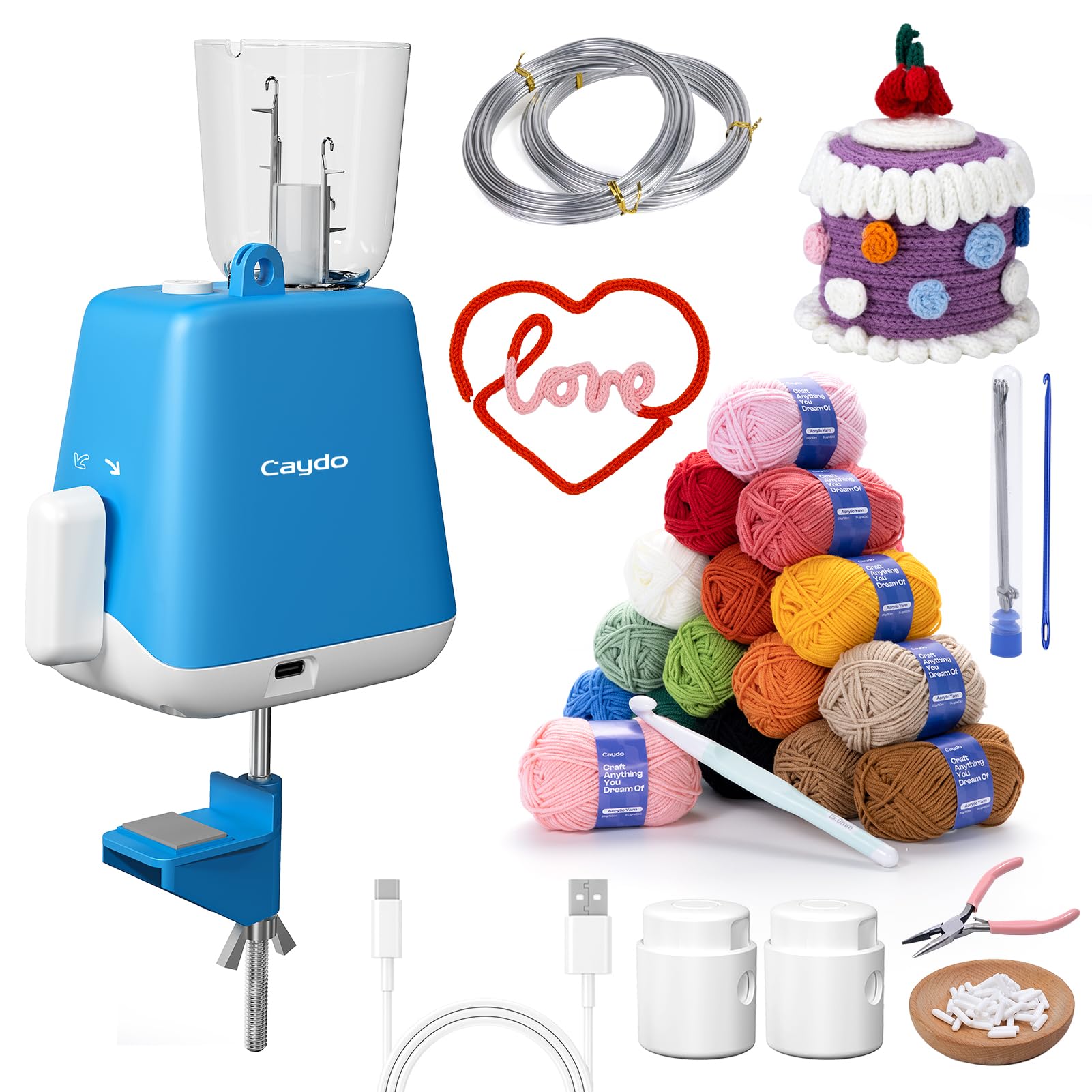 Caydo iCord – Kit de 92 piezas para hacer manualidades, tejido de punto para hacer manualidades, tejer rápidamente iCord con máqui