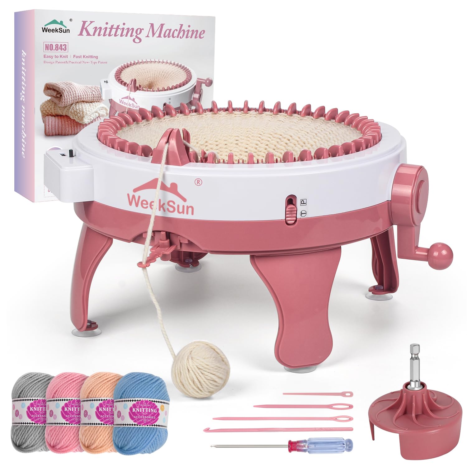 WEEKSUN Máquina de tejer 48 agujas, telar de tejer con adaptador y contador de filas, máquina de ganchillo para sombrero y bufanda