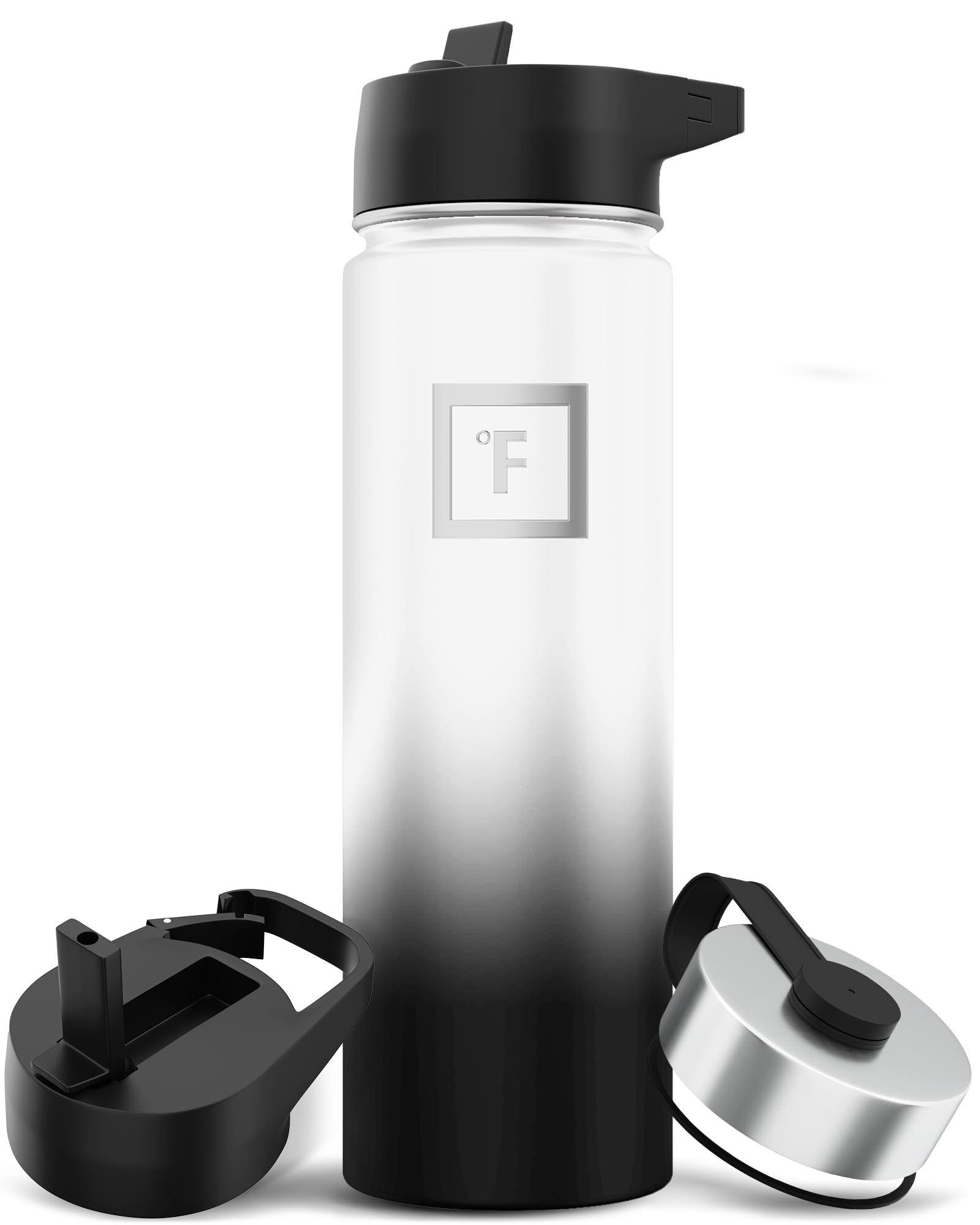 IRON °FLASK Botella de agua deportiva de 22 onzas, 3 tapas (tapa con popote), a prueba de fugas, acero inoxidable, para gimnasio y