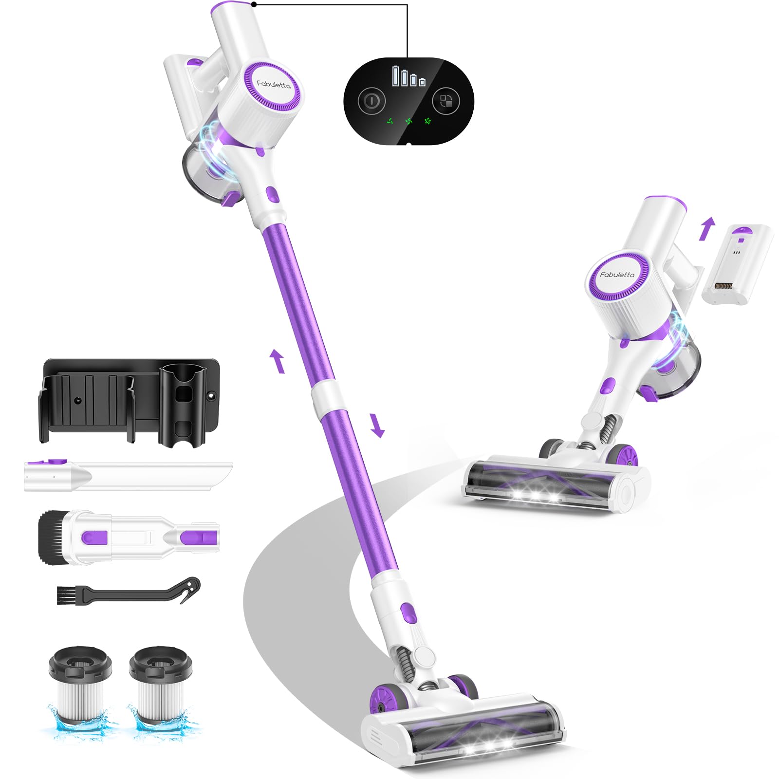 FABULETTA Aspiradora inalámbrica para el hogar, aspiradora ligera de 500 W con batería desmontable máxima de 50 minutos, motor sin