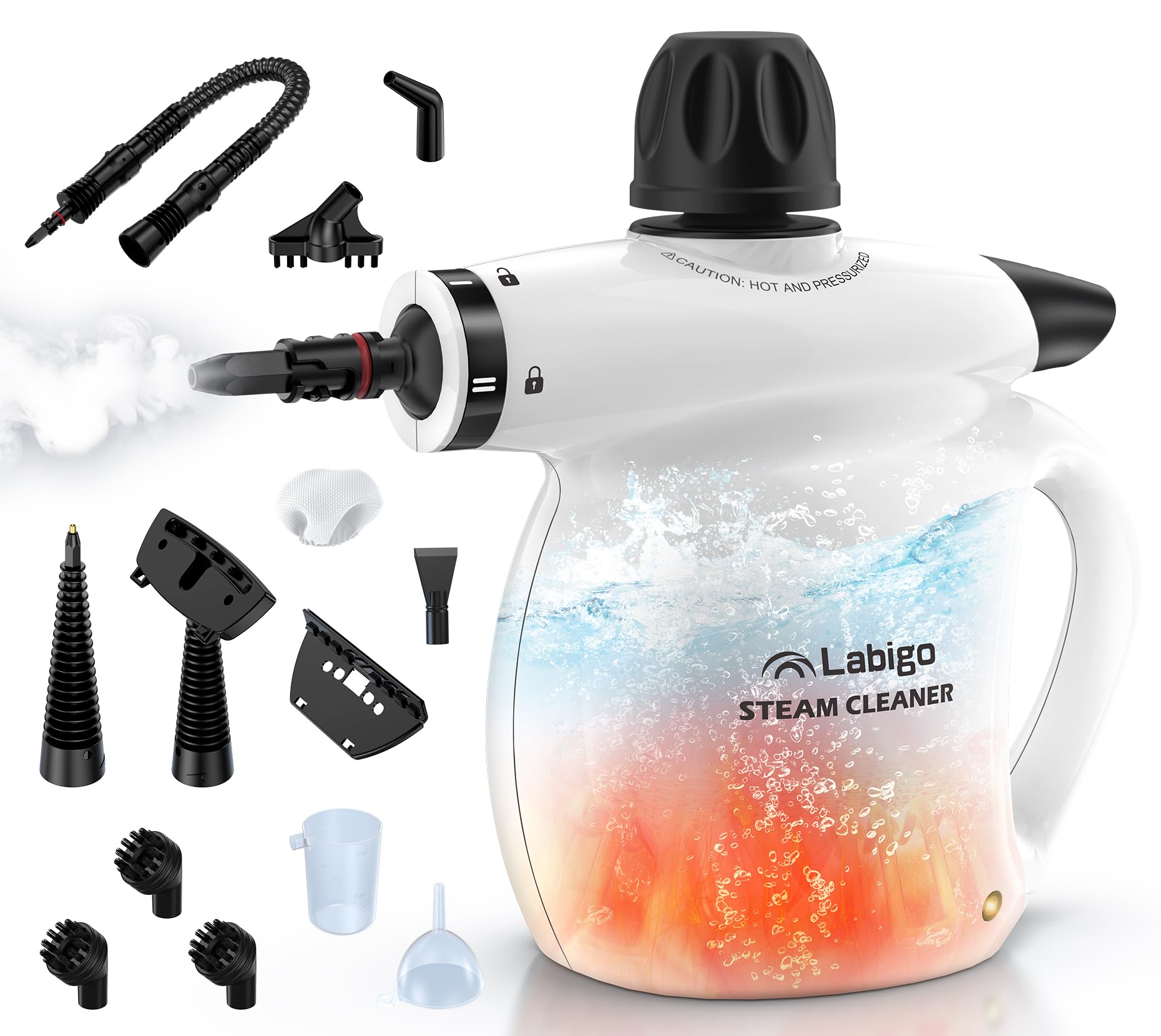 LABIGO Limpiador a vapor, 13 piezas de vapor natural multiusos de limpieza profunda, vaporizador portátil para limpiar el hogar, l