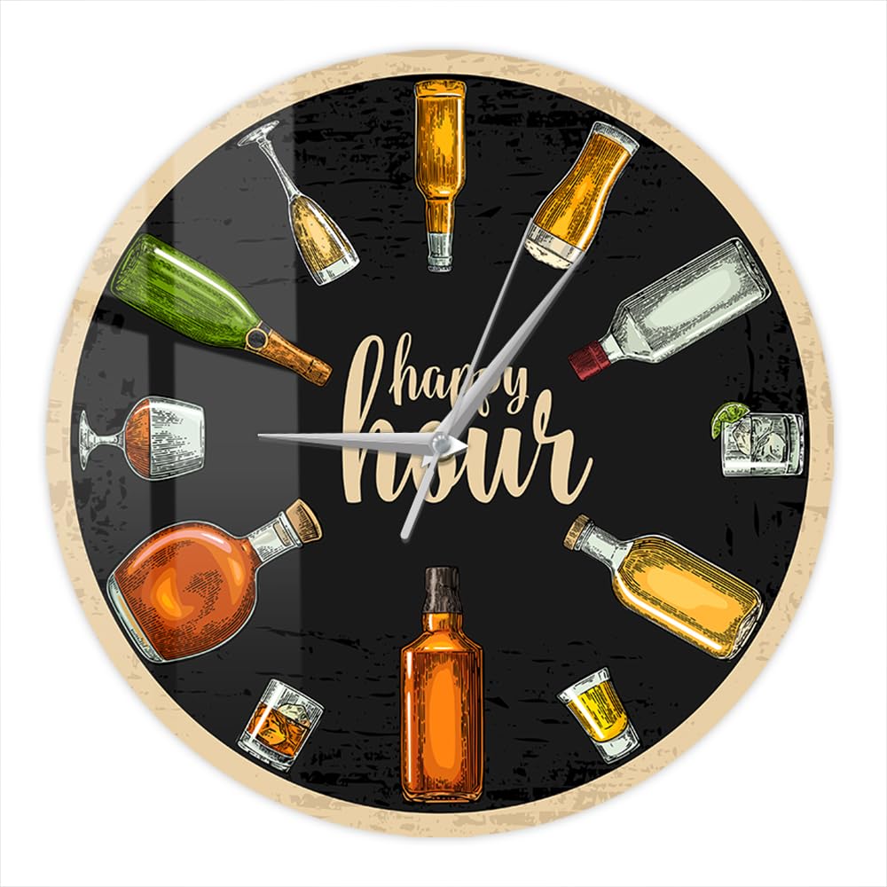 Reloj de pared de vino de 12 pulgadas, Happy Hour Wine Time Wine Booze Beer Reloj de pared silencioso sin tictac reloj de pared pa