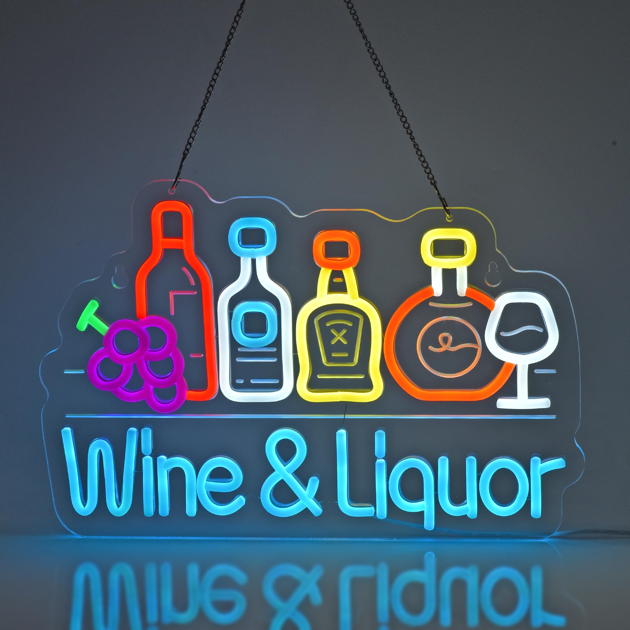 Letrero de neón de licor de vino, luces de neón colgantes para decoración de pared para negocios, restaurante, tienda, bar, pub, f