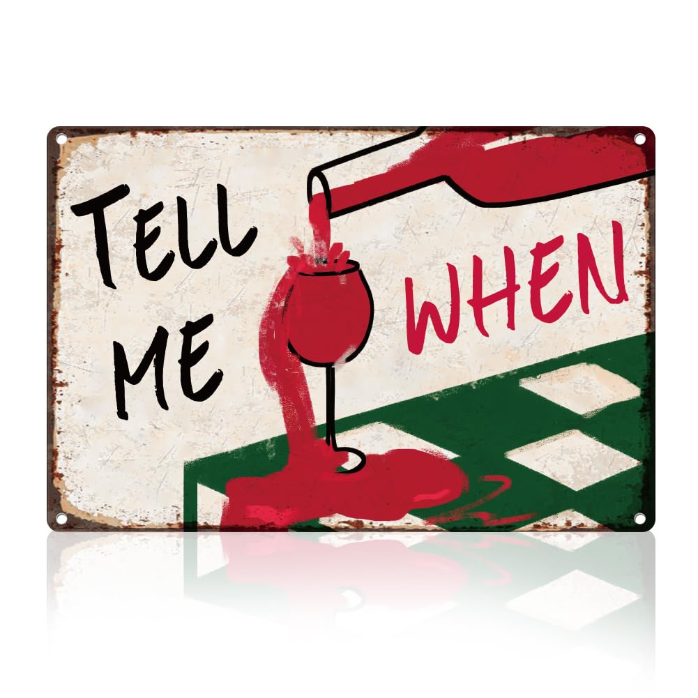 DOODLREAM Funny Bar Pour Red Wine Tin Sign Retro Metal Wall Decor 8″ x 12″ Tell Me When Vintage Wall Art Poster for Home Coffee Ca