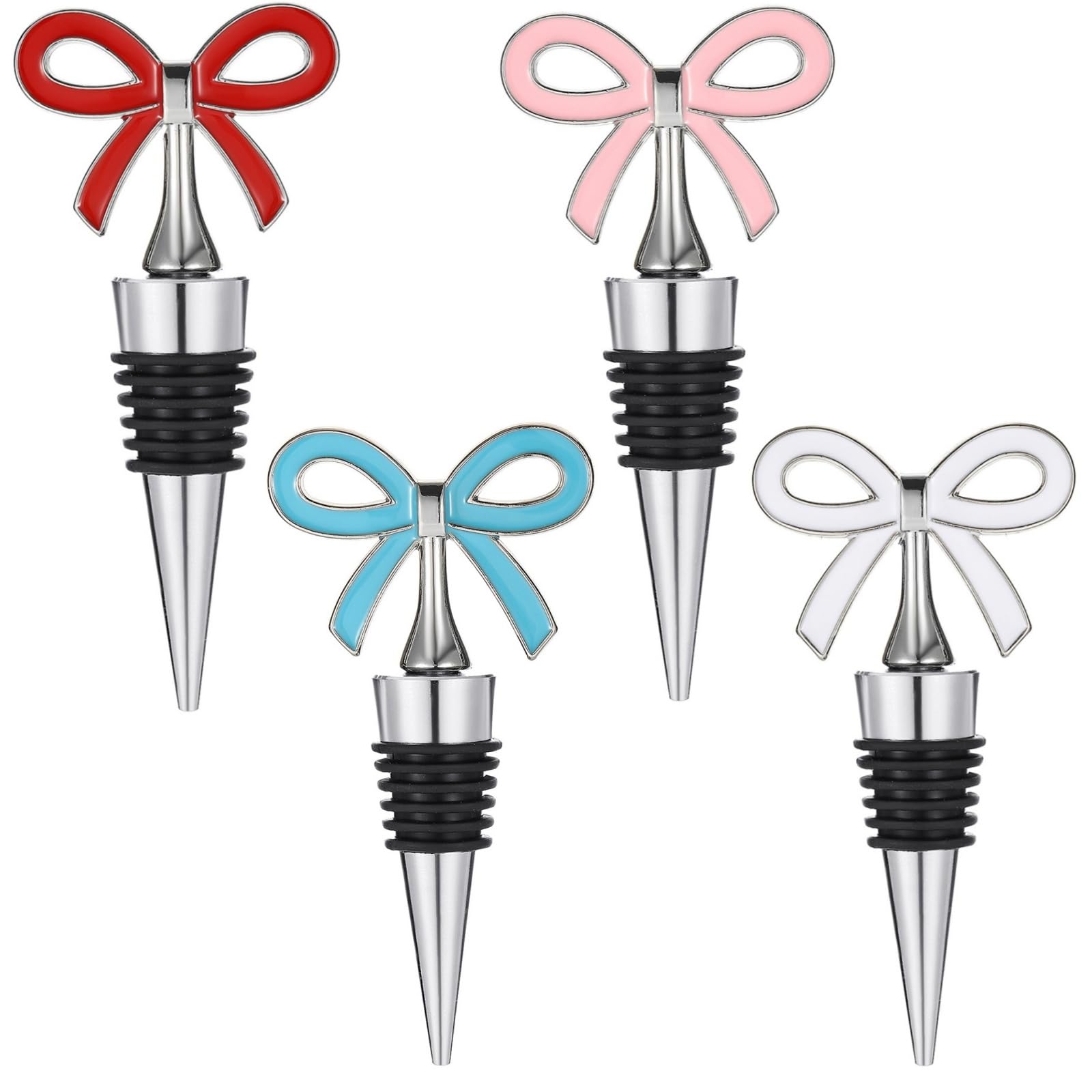 Bow – Juego de tapones de vino, tapón decorativo reutilizable de metal para botella de vino con sello de silicona, a prueba de fug