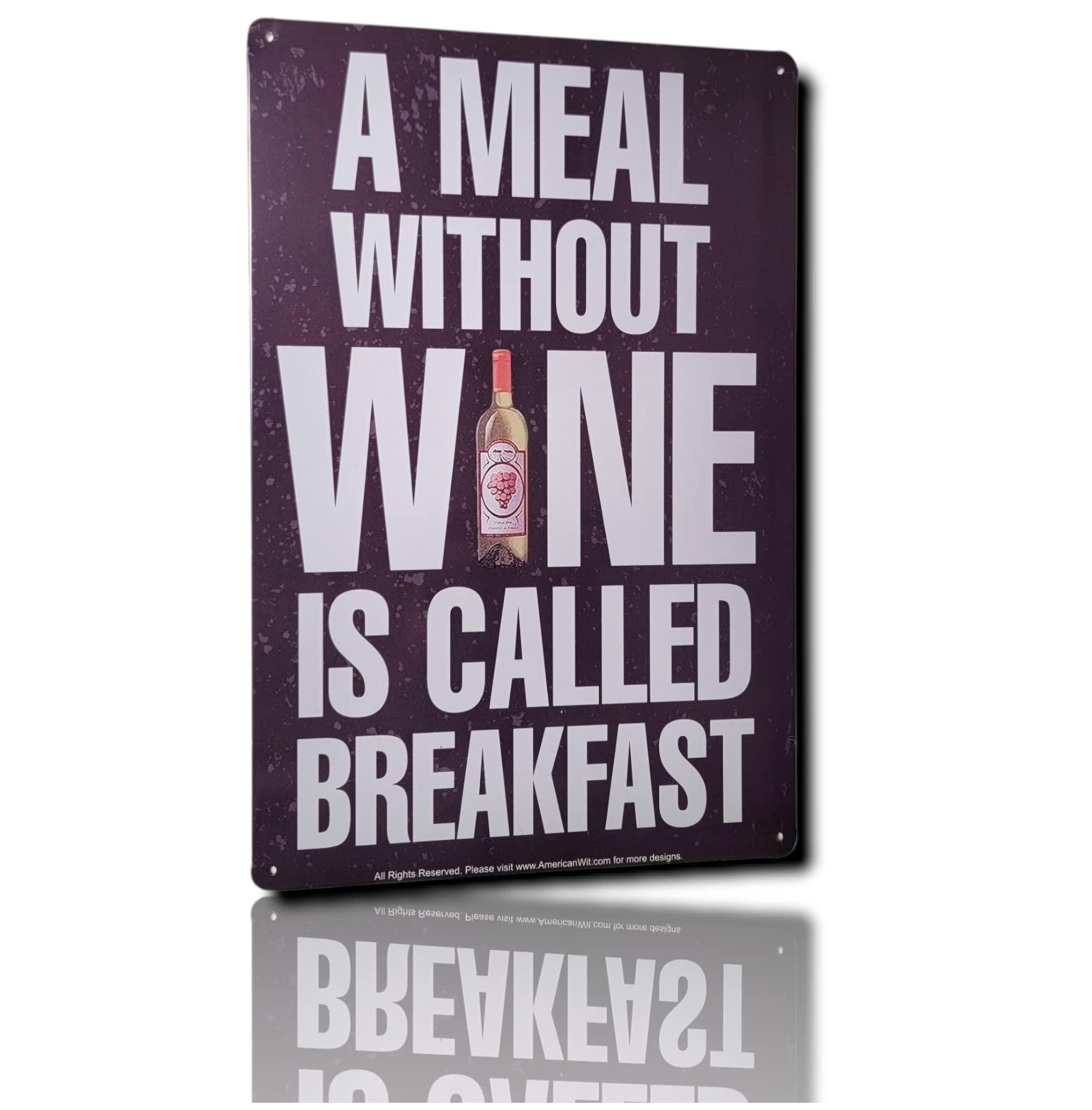 AMERICAN WIT Cartel de metal divertido de barra de 8 x 12 pulgadas (A MEAL WITHOUT WINE IS CALLED BREAKFAST) Placa decorativa de p