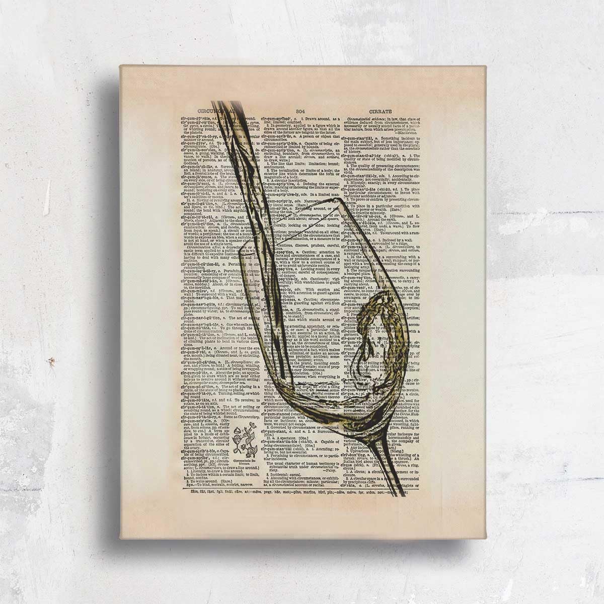 SiuSue Lienzo decorativo con diseño de copa de vino blanco con diccionario retro, carteles enmarcados para bar, club, salón, cocin