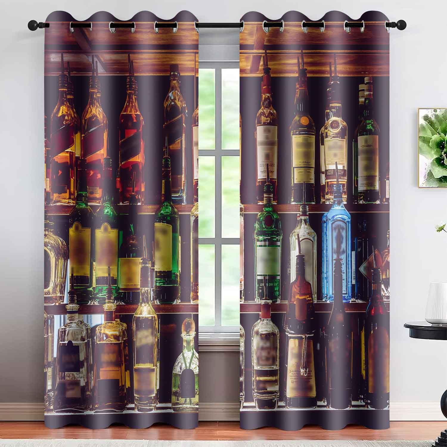 Cortinas opacas para bar de vinos, botella de cóctel de whisky, botella de vino, cortinas de ventana de cueva para hombres, niños,