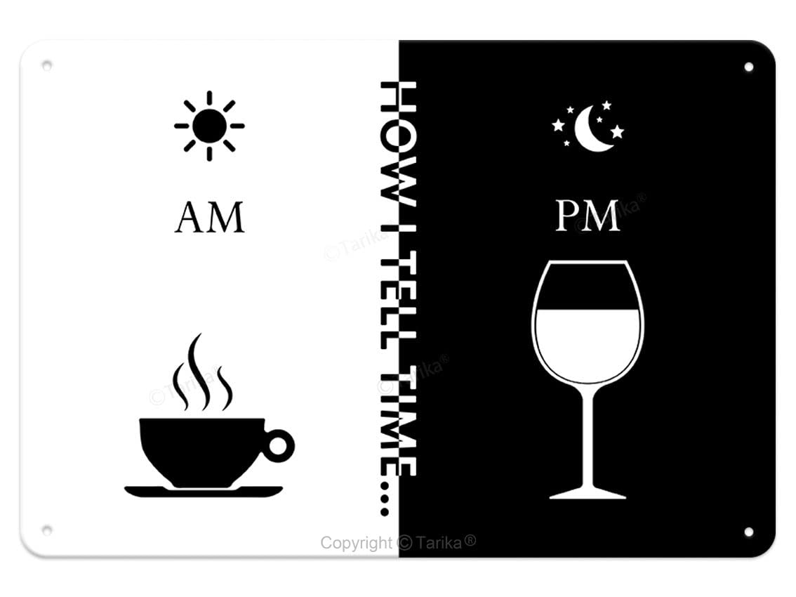 Coffee Am Wine Pm – Letrero de metal retro vintage para el hogar, bar, cafetería, cueva, decoración de 12 x 8 pulgadas, citas insp