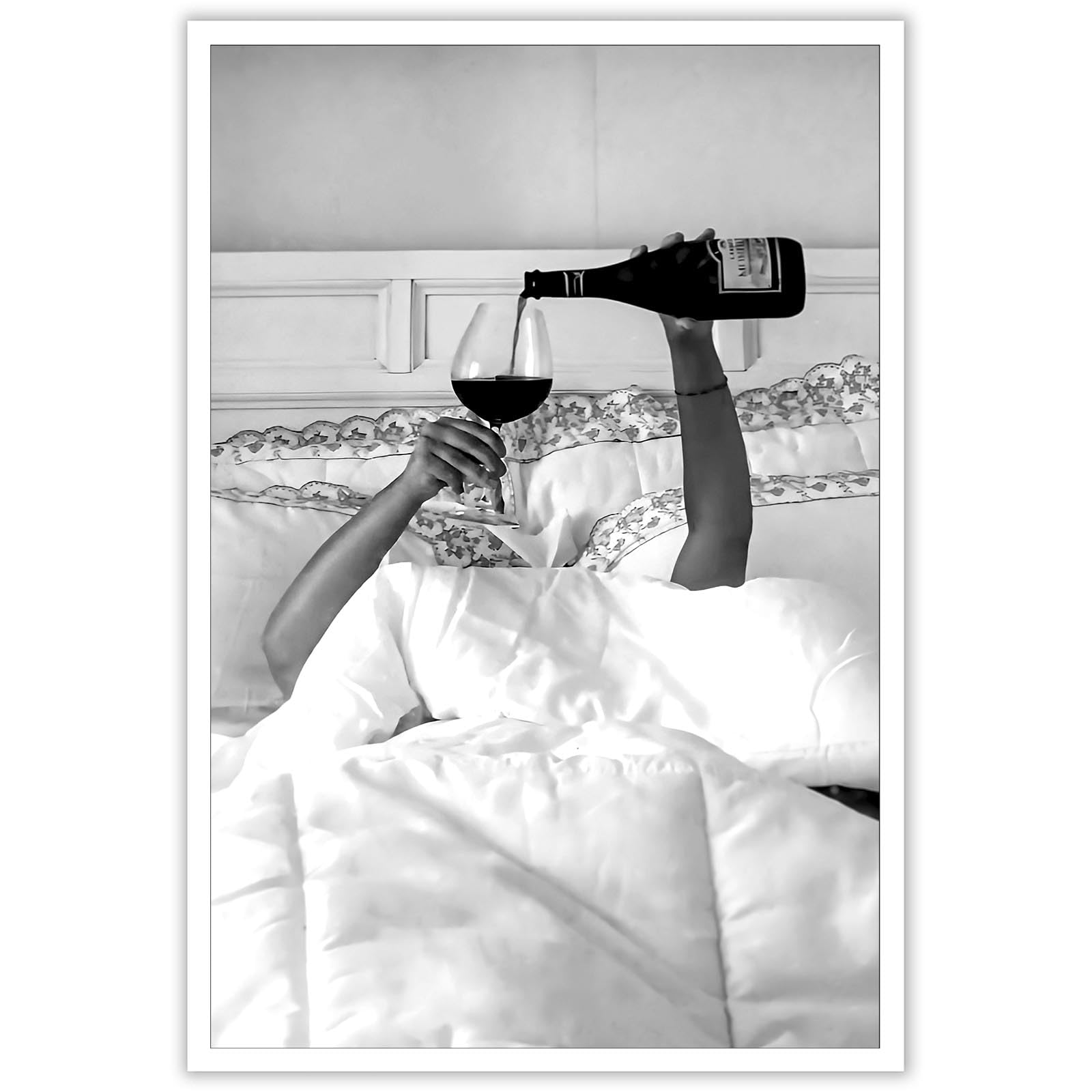 Quark Decoración de pared feminista vintage, lienzo en blanco y negro, pósteres estéticos de mujer de moda bebiendo vino en la cam