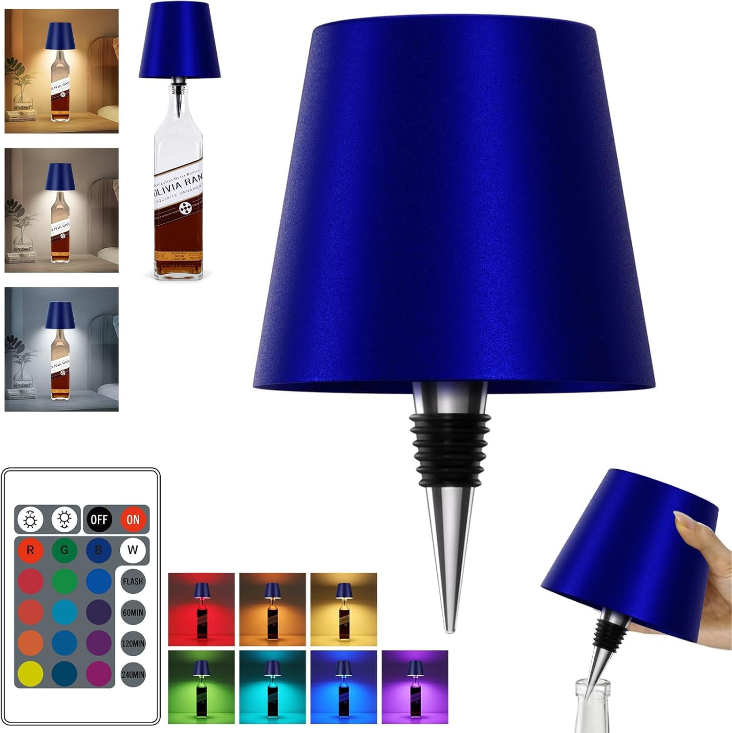 Lámpara inalámbrica para poner sobre botella, lámpara LED RGB, con control remoto, azul zafiro RGB, una unidad