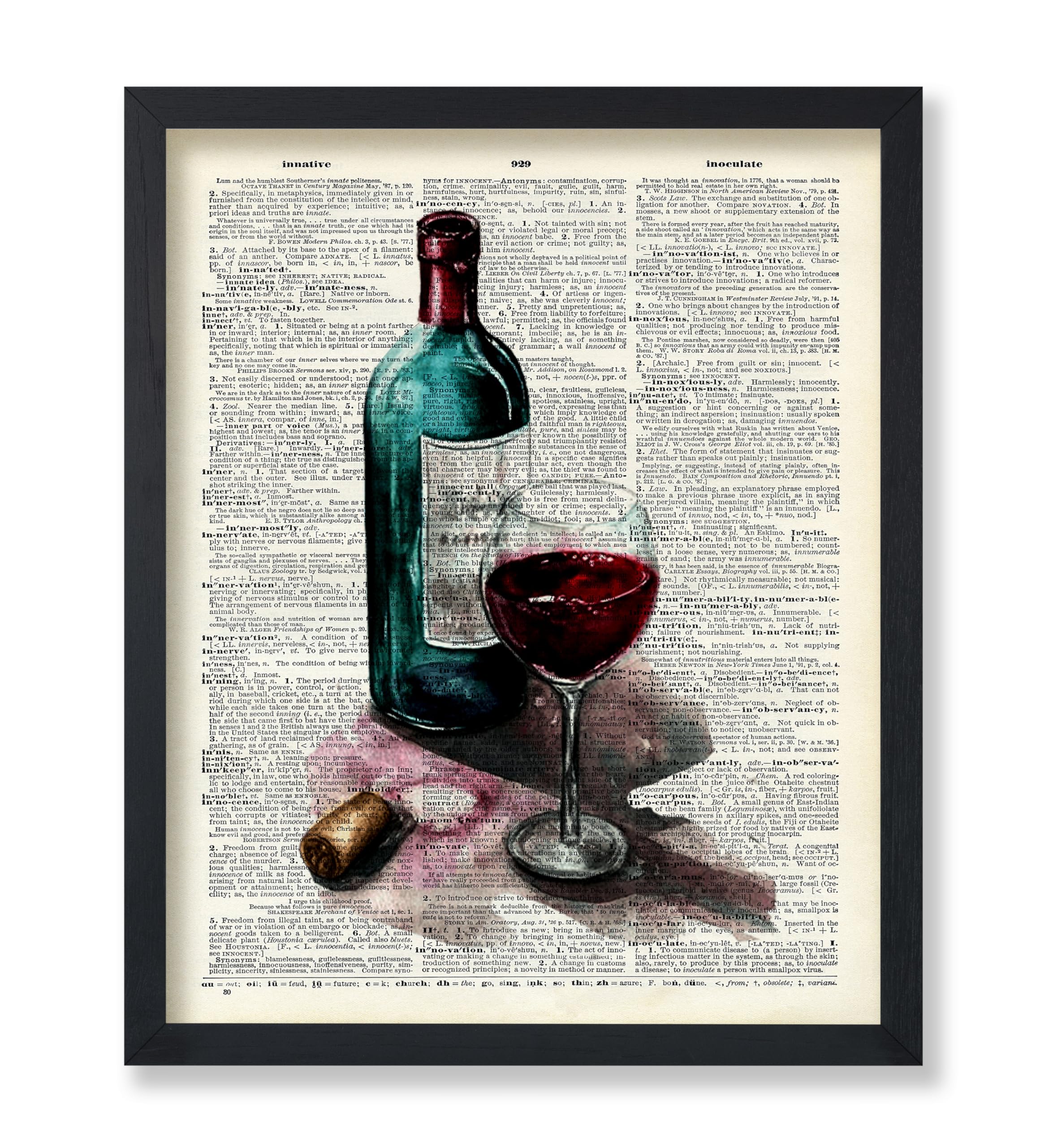 Poster Master Póster artístico de diccionario, impresión de vino tinto, copa de vino y arte de alcohol, regalo para hombres, mujer