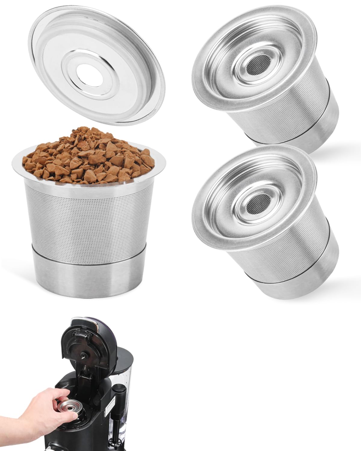 Paquete de 3 cápsulas de café reutilizables K Cups y cápsulas de café para cafetera Ninja PB051 y CFP101/PB041-304 de acero inoxid