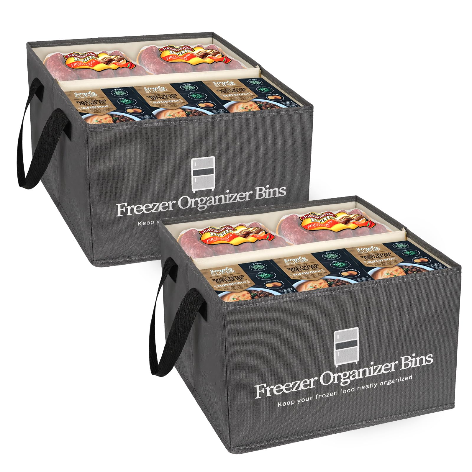 Contenedores organizadores para congelador, paquete de 2 contenedores organizadores plegables para congelador profundo de 15 x 14