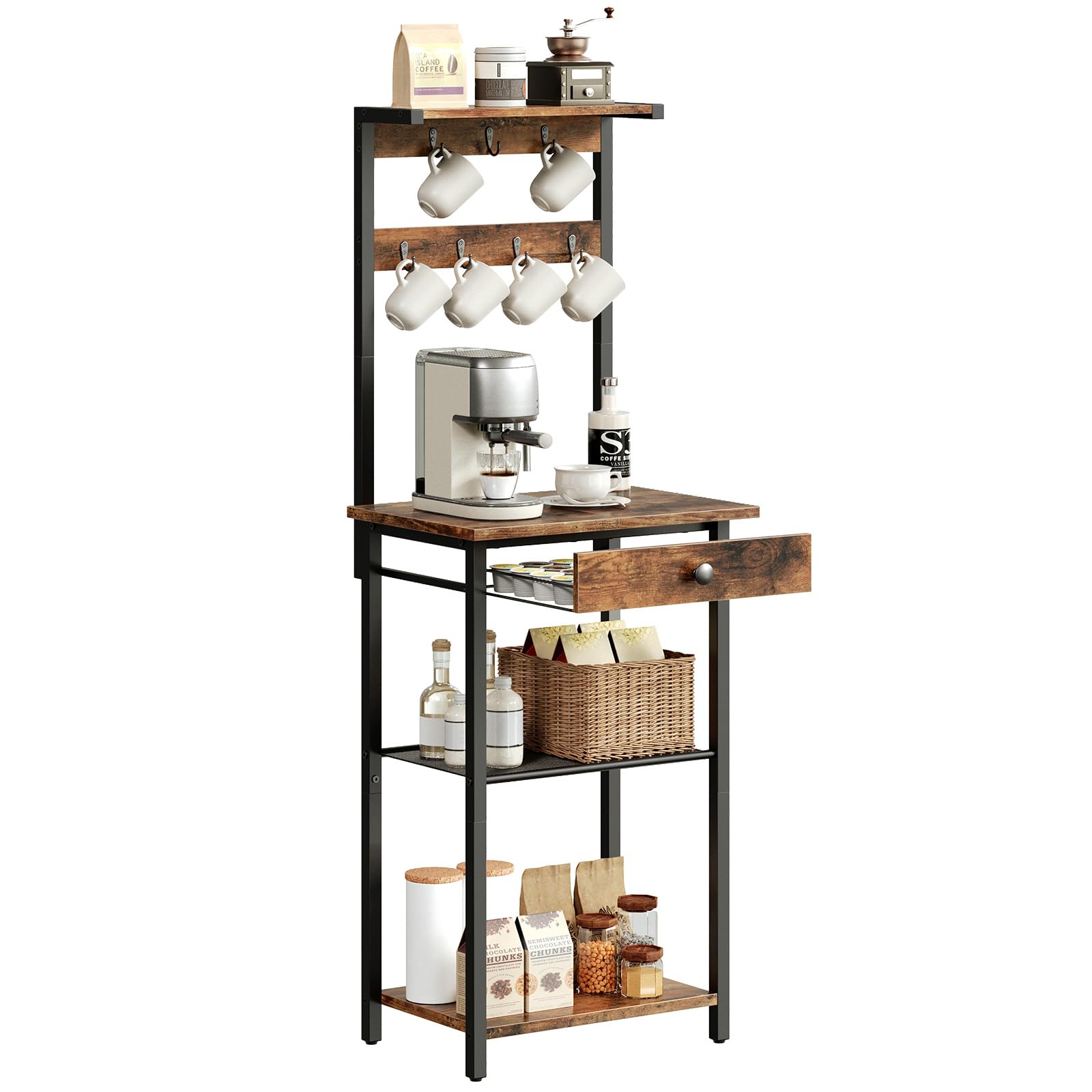 Estación de café con 5 niveles, estante de cocina pequeño con 4 ganchos en forma de S, estante de almacenamiento esquinero para es
