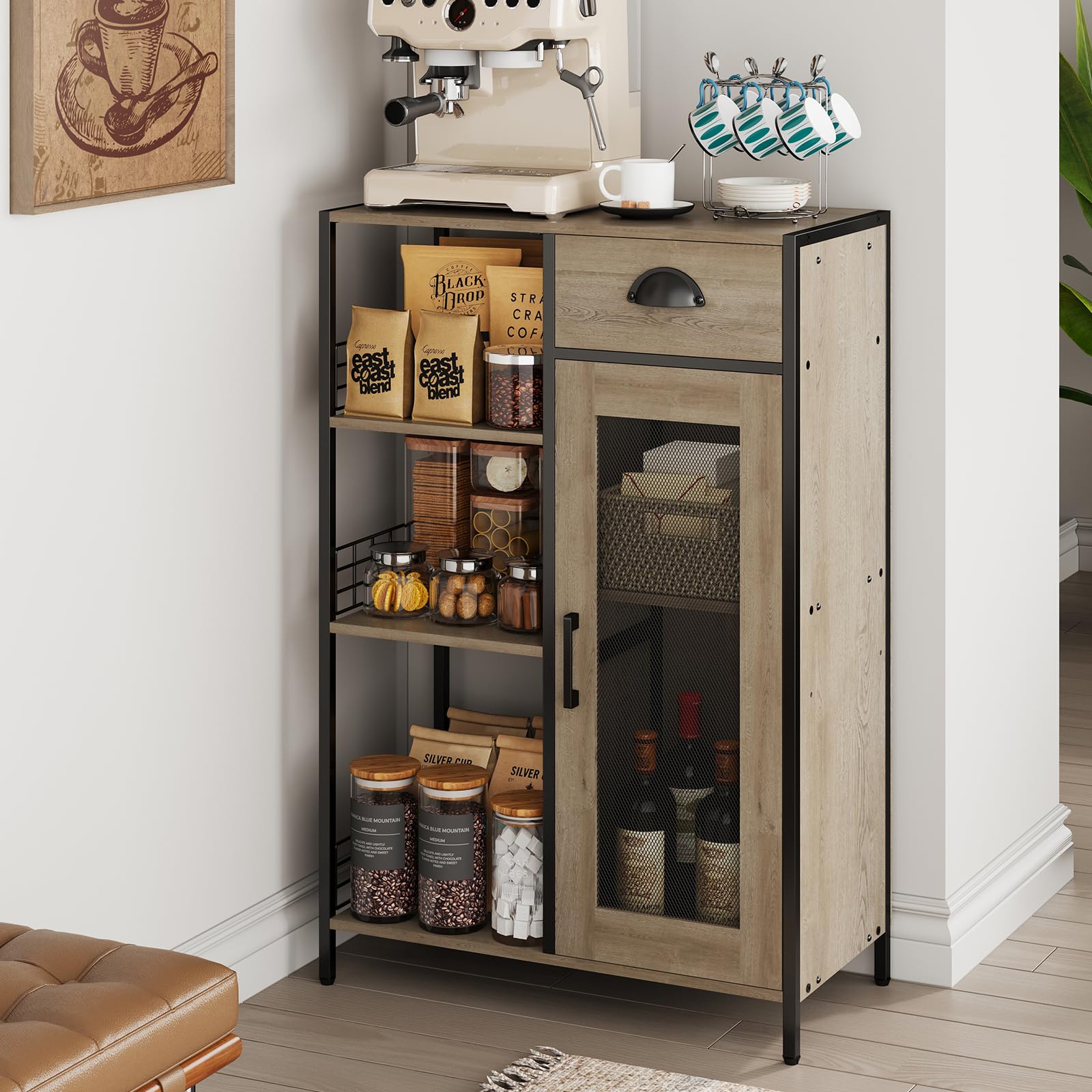 Armario de bar para el hogar, cocina, pequeño armario de licor con estantes y puertas, aparador de buffet de granja, gabinete de c