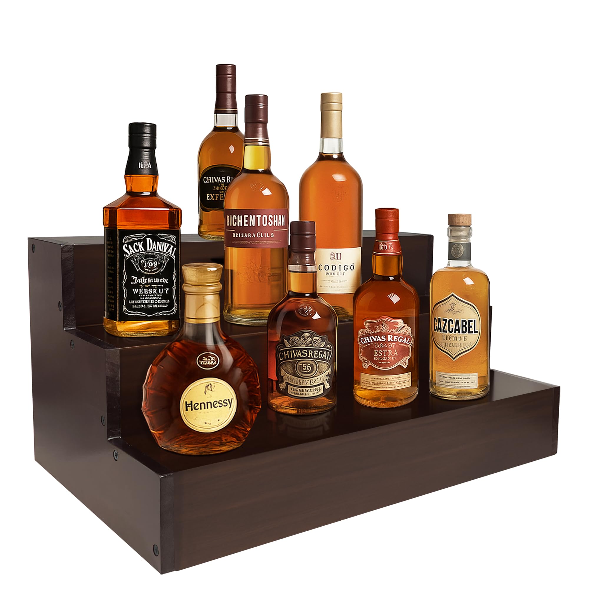 Royxen Estante de madera para botellas de licor, estante de barra de 3 niveles, soporte de barra de licor vintage para decoración