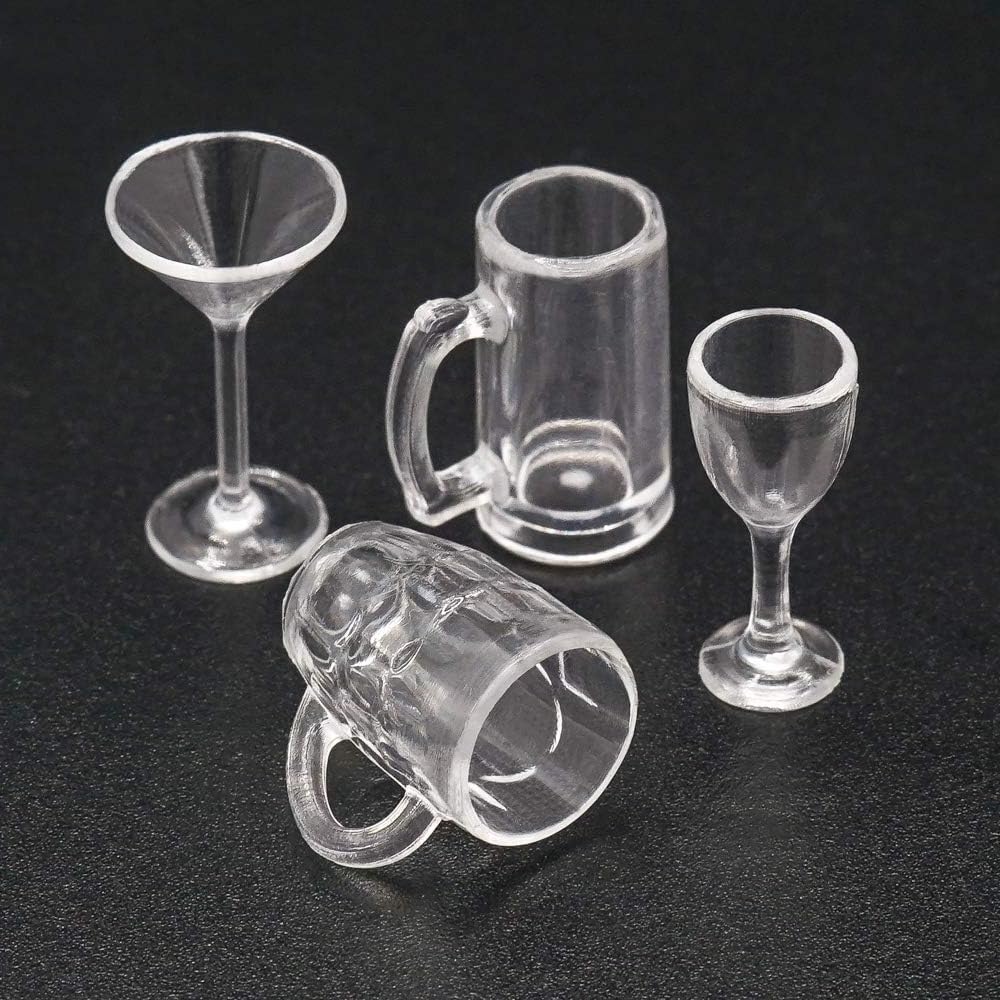 4 vasos de cristal transparente para casa de muñecas en miniatura: copa de cóctel de vino a escala 1/12 para bar de cocina – Mini
