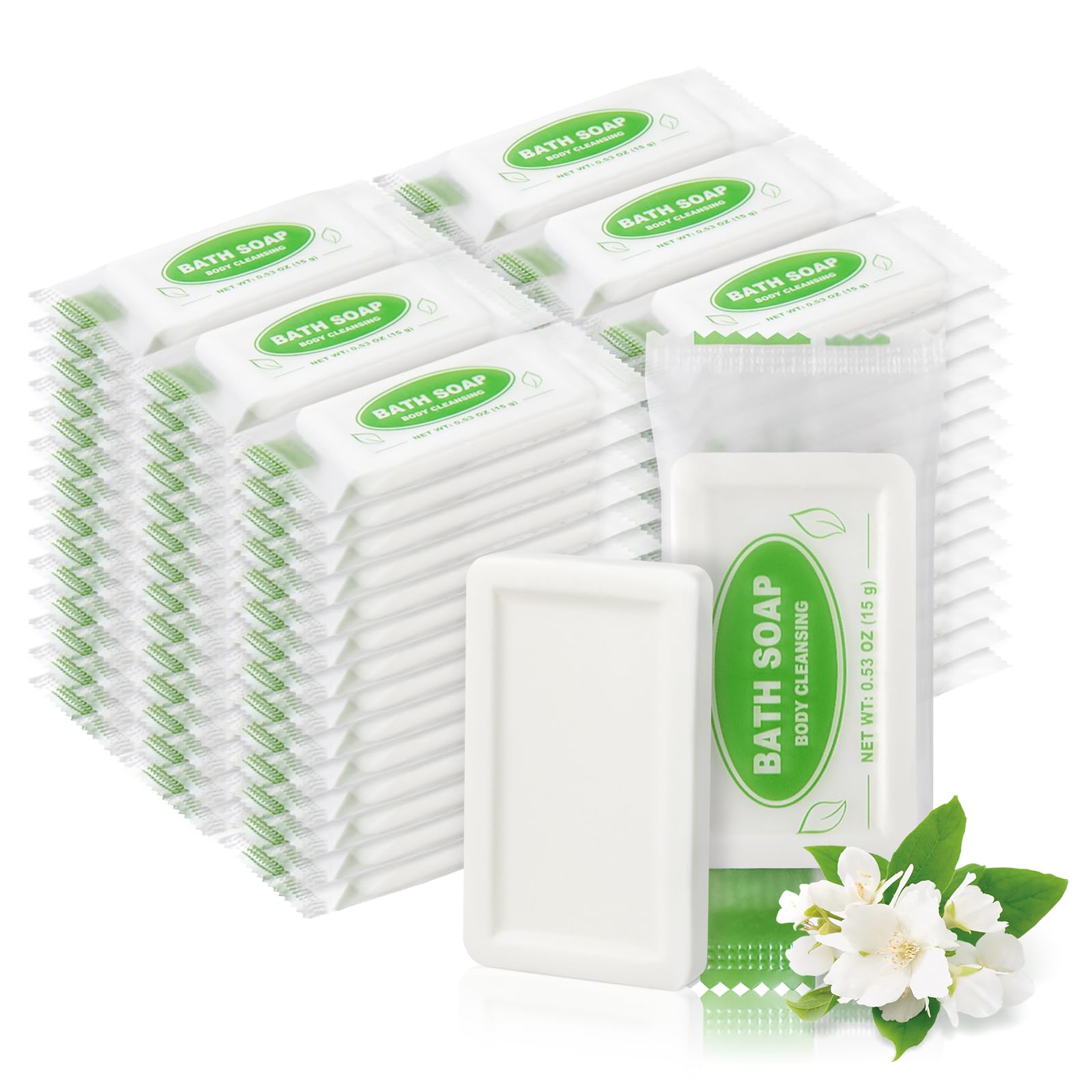 Paquete de 50 mini barras de jabón de tamaño de viaje, 0.53 onzas (0.53 oz) envueltas individualmente, pequeñas barras de jabón de