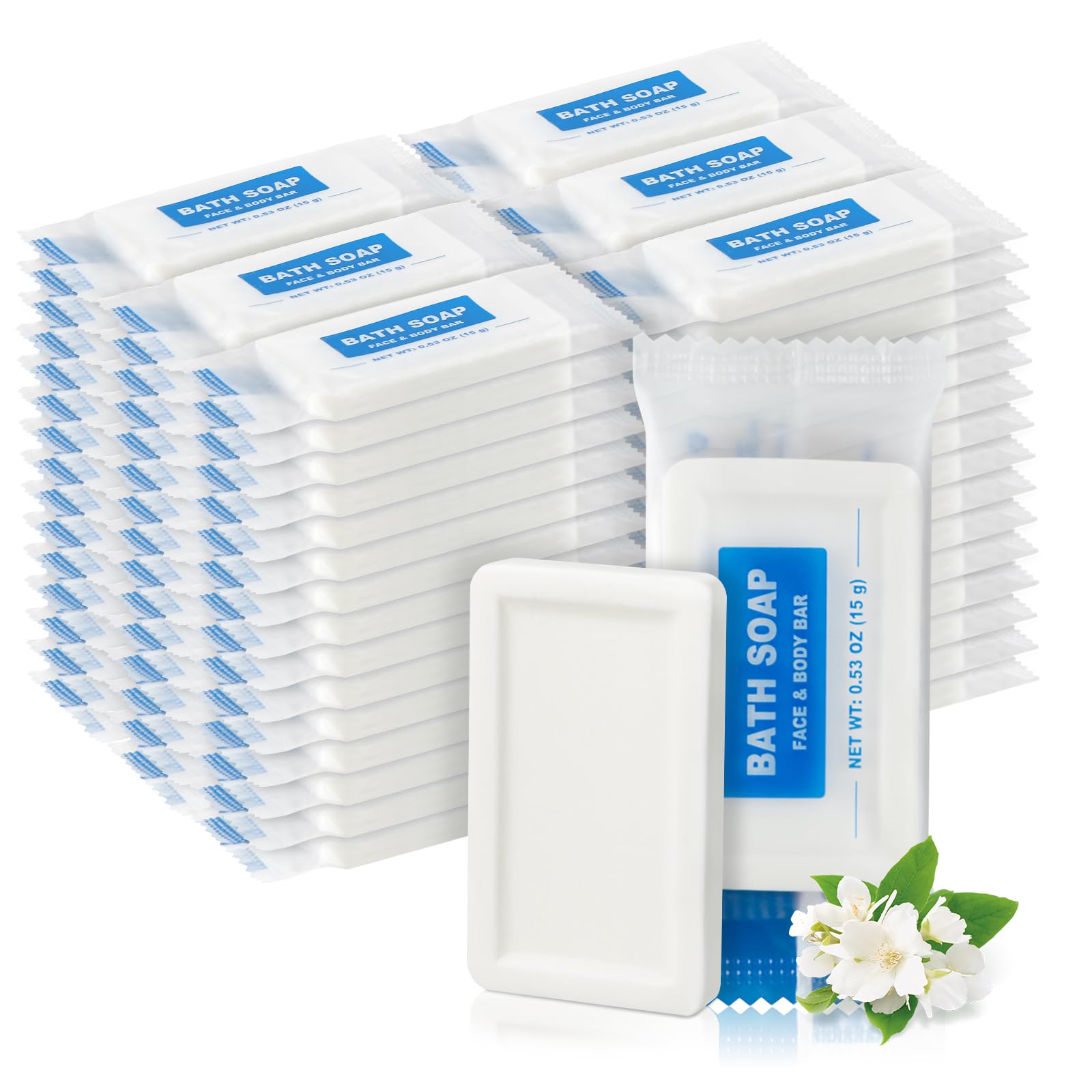 Mini barra de jabón de tamaño de viaje a granel, paquete de 50, envueltas individualmente de 0.53 onzas / 0.53 oz, pequeñas barras