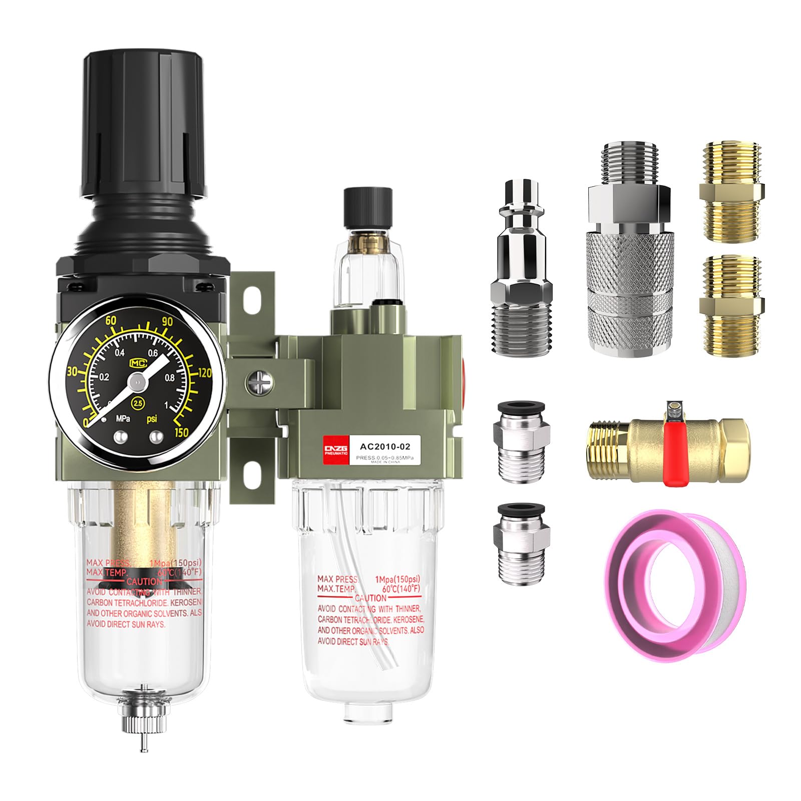 NPT 1/4 Air Regulator with Gauge,Air Compressor Water Separator with Accessories,Pneumatic Compressed Air Filter Pressure Oil Trap