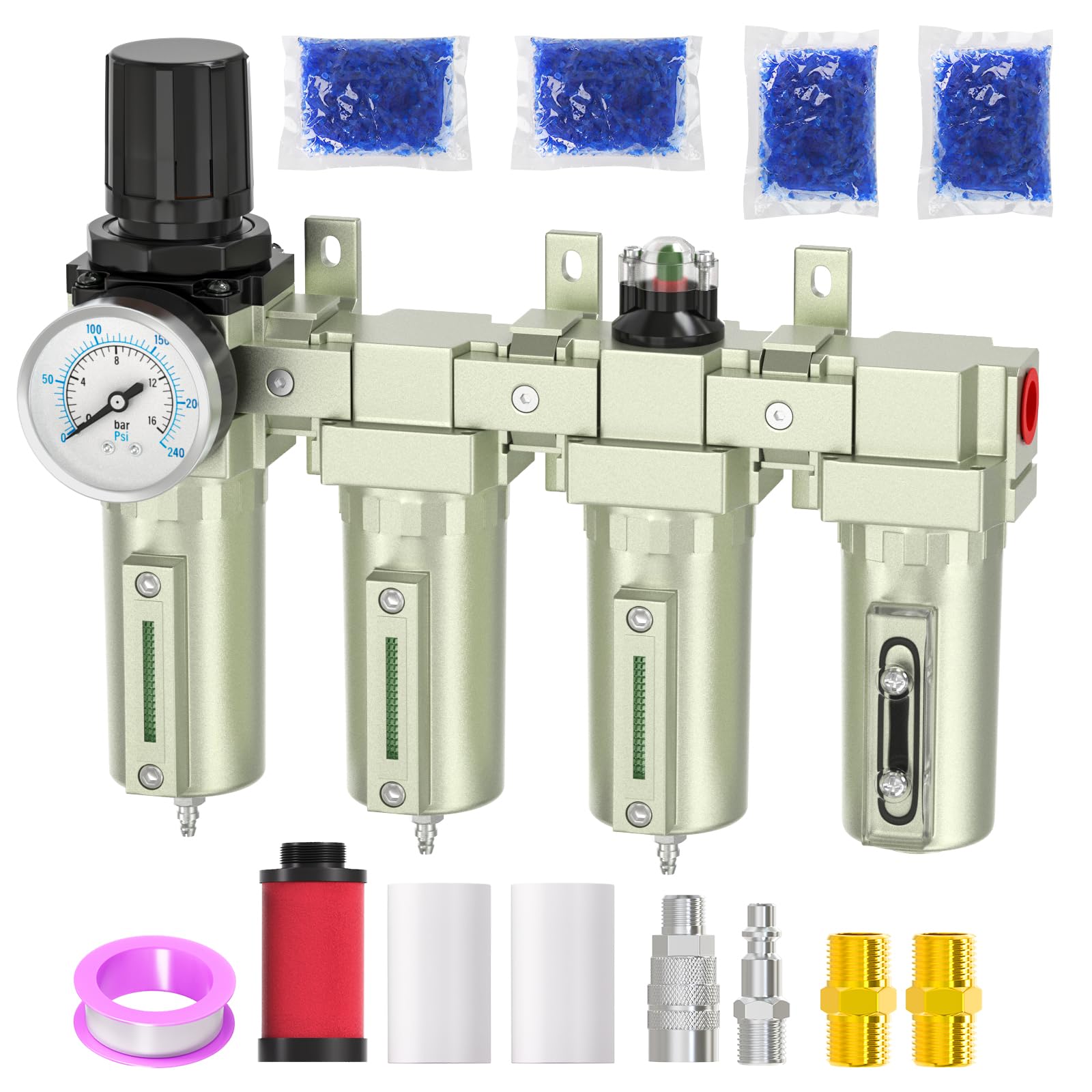 Sistema de secado de aire de 4 etapas de grado industrial, 3/4 “Npt con drenaje manual, secador desecante, regulador de aire, filt