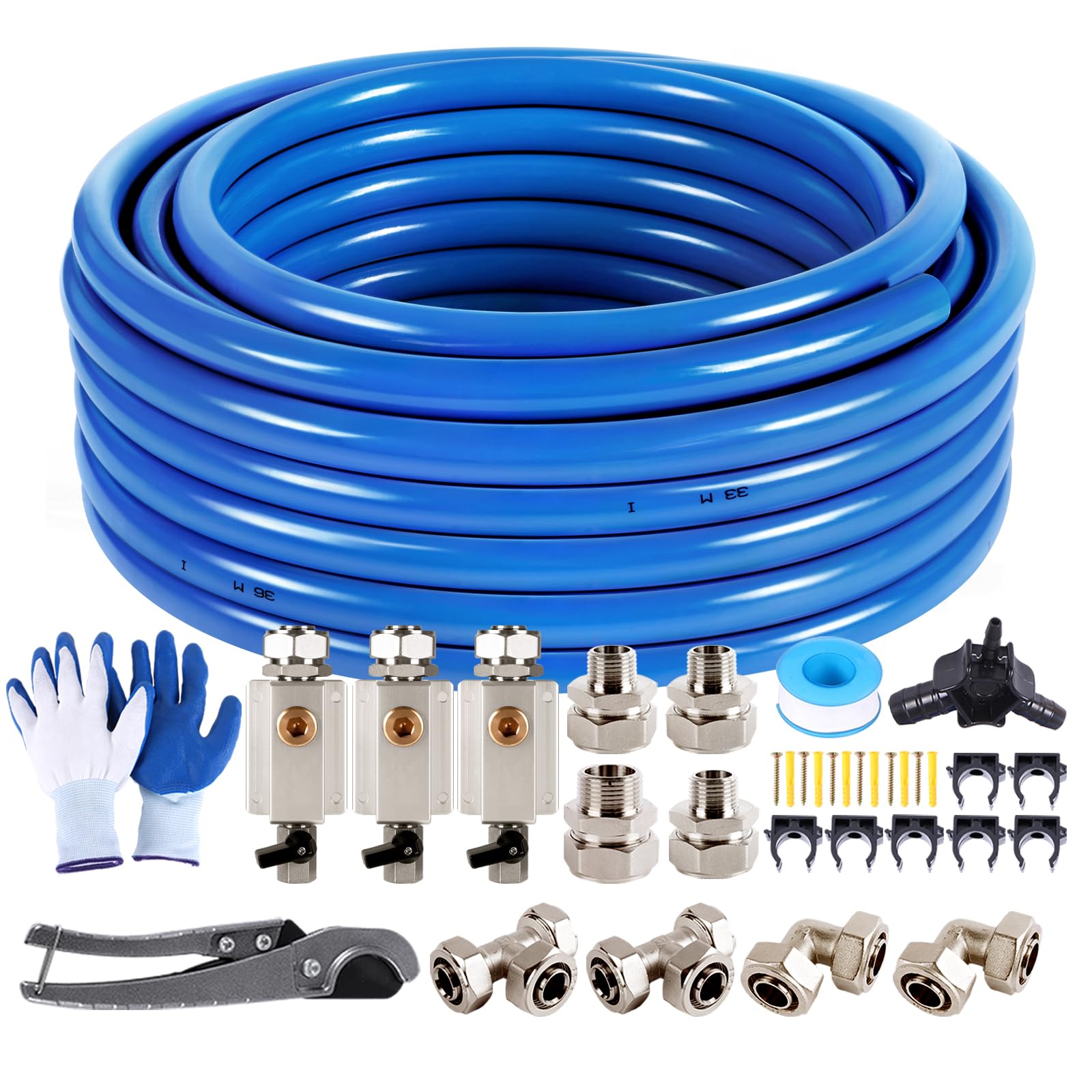 MILADO Kit de línea de aire comprimido de 3/4 pulgadas y 110 pies, sistema de tuberías de aluminio HDPE para garaje/tienda, kit de