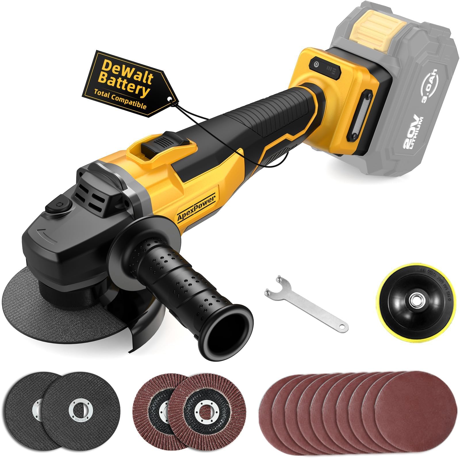 Amoladora angular inalámbrica de 20 V, motor de potencia sin escobillas de 9600 RPM, 4-1/2 pulgadas a 5 pulgadas, juego de herrami