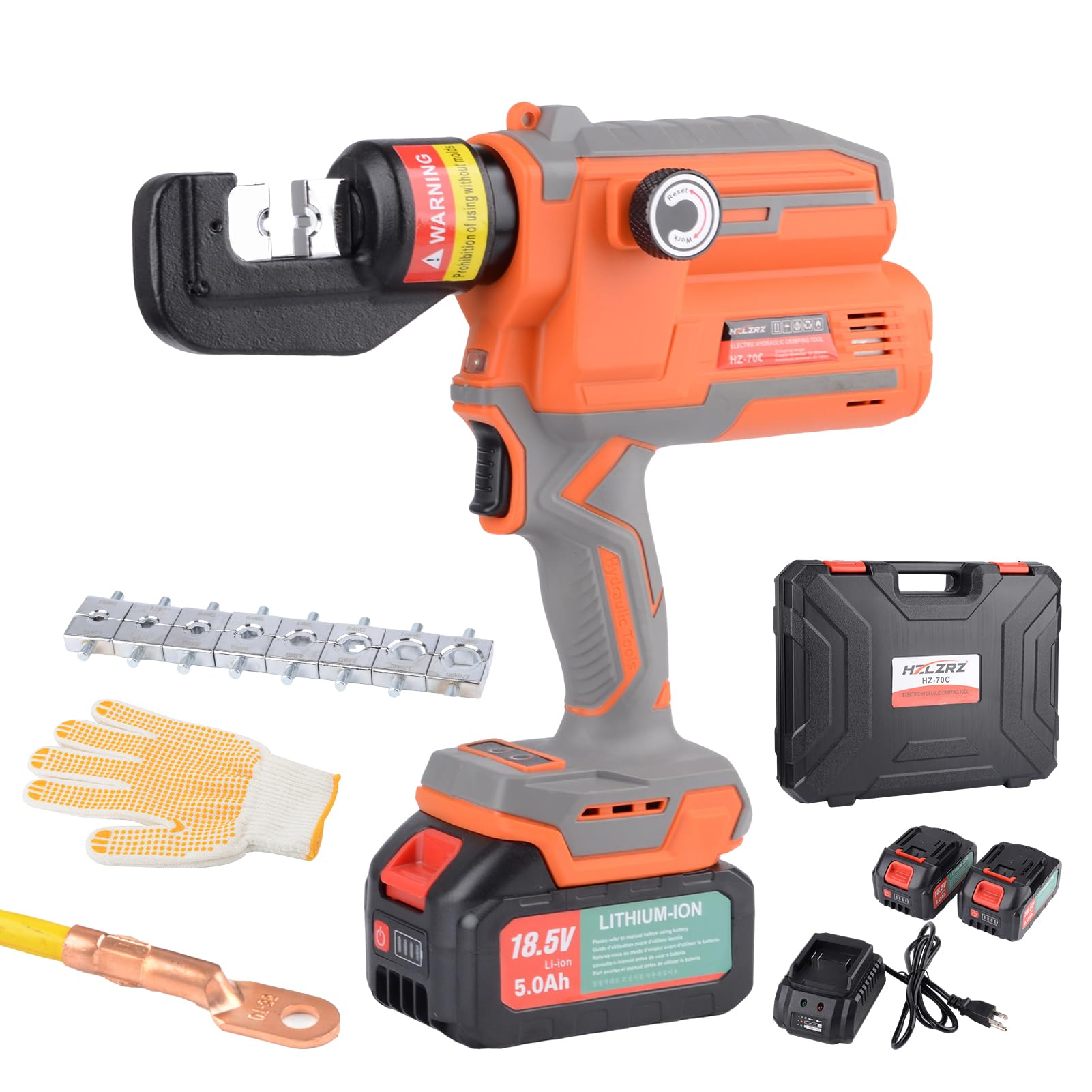 HZLZRZ Herramienta de prensado hidráulica eléctrica, herramienta de prensado de orejetas de batería de 12 toneladas con protección
