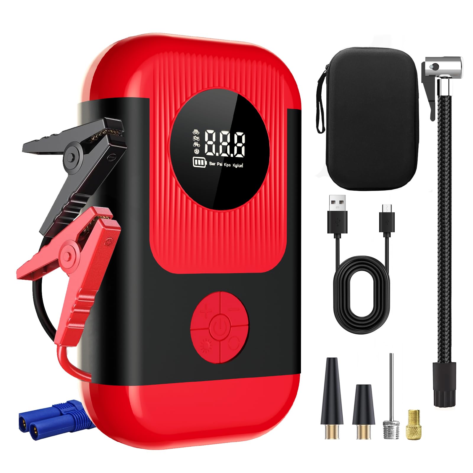 Inflador de neumáticos compresor de aire portátil con arrancador de salto – 150 PSI y 8000 mAh batería de coche arrancador con med