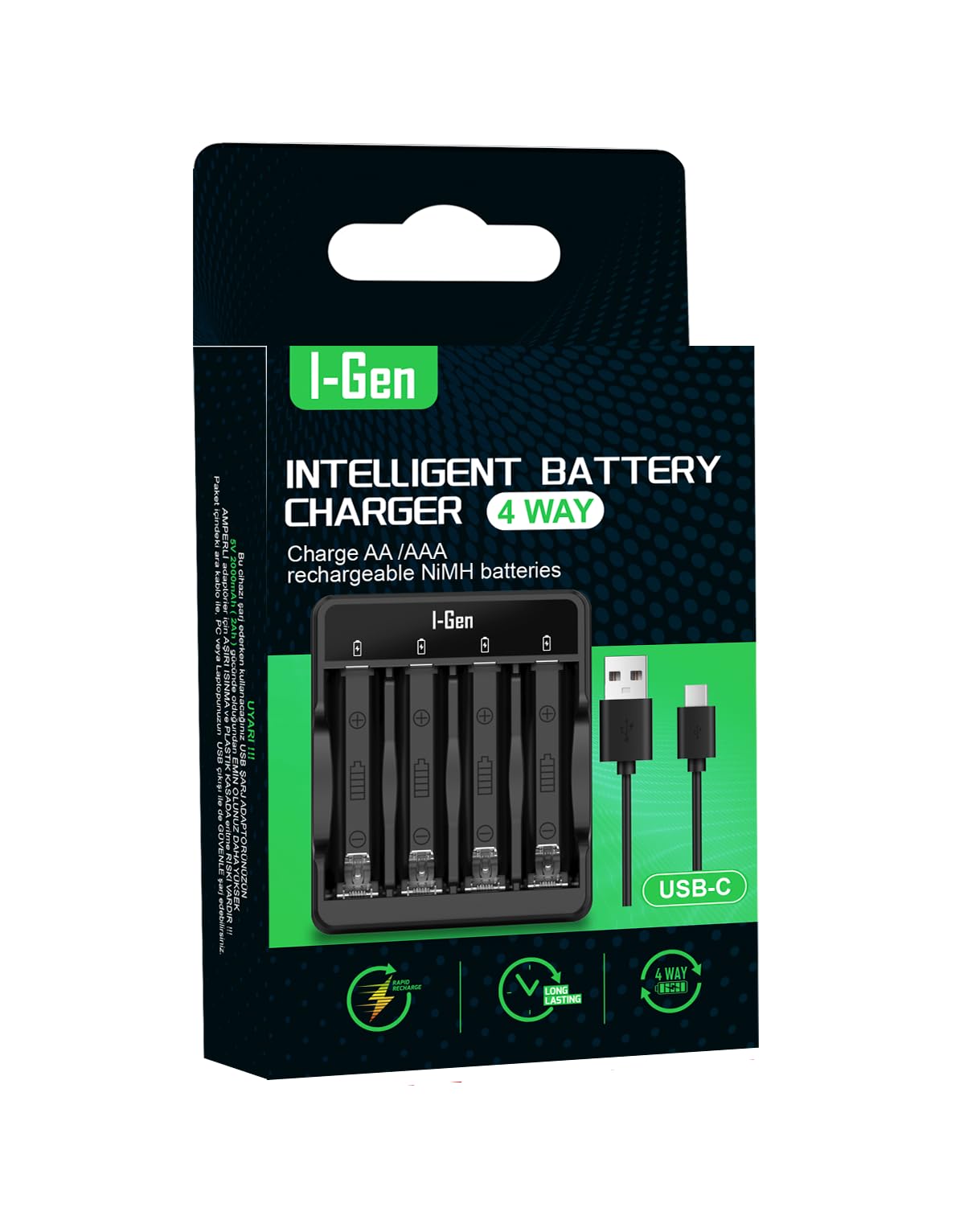 I-Gen G400 4-Battery Charger AA/AAA Compatible Type-C Input Smart Fast Battery Charger