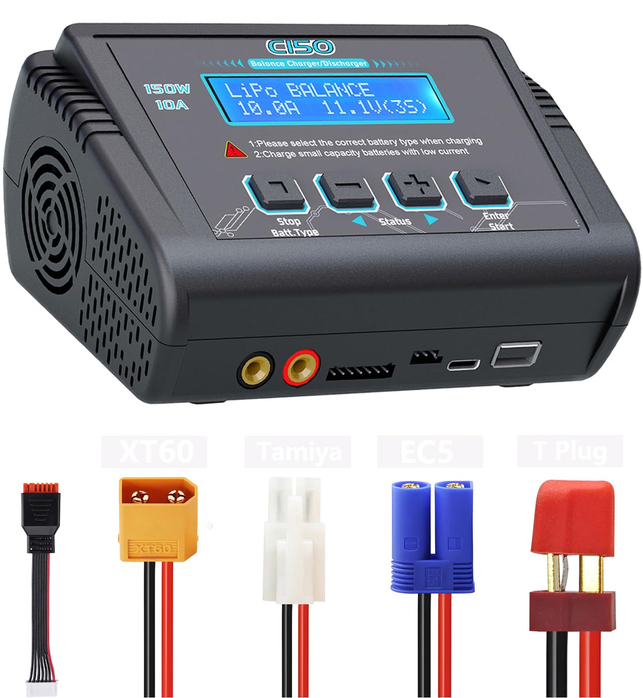 Lipo Cargador de batería, 1S-6S Cargador de coche RC 150W 10A Cargador de equilibrio Cargador de carga rápida Cargador inteligente